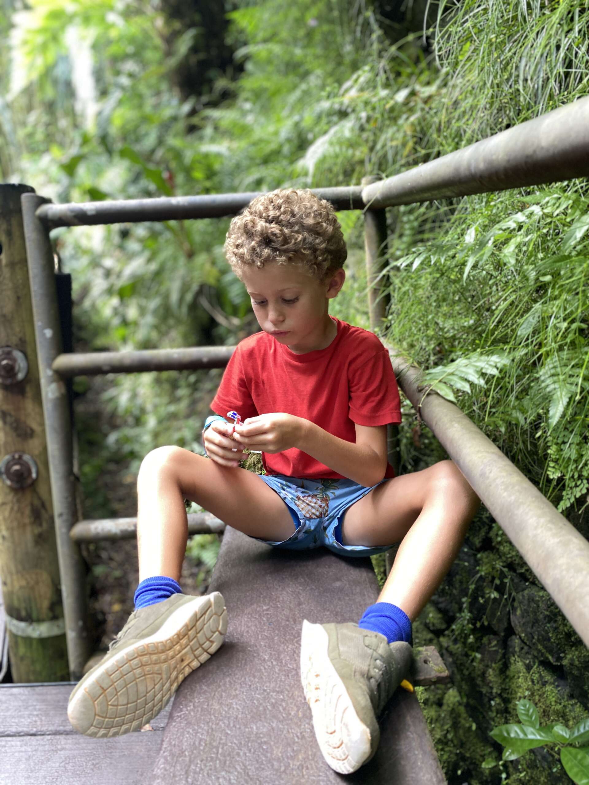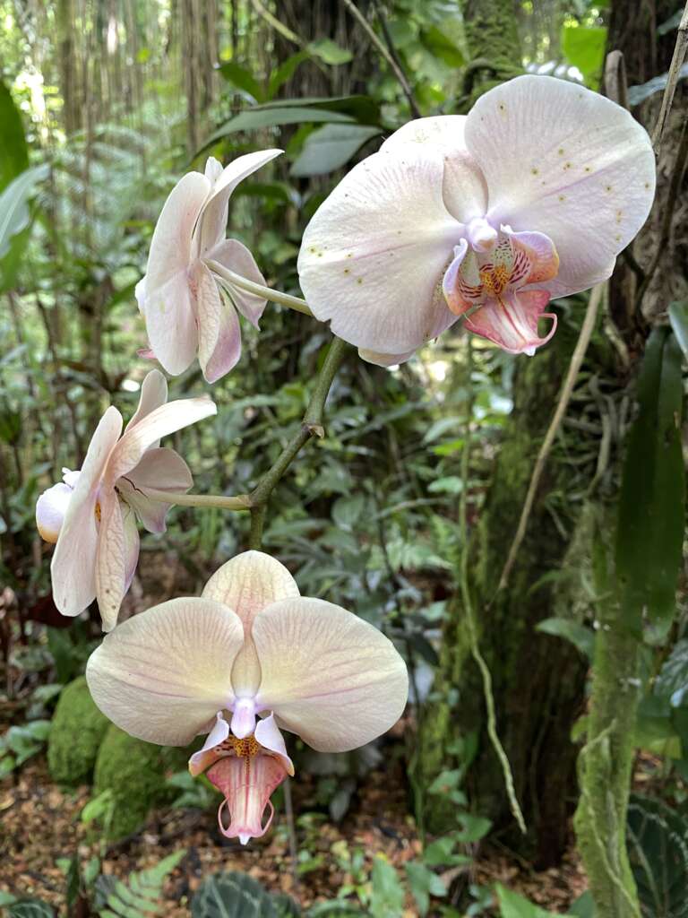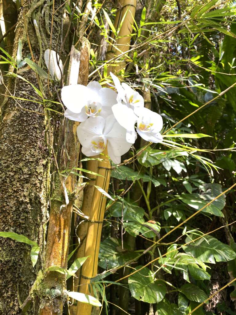 A certains moments, clairement il était plus intéressé par la chasse aux numéros que par les plantes, mais cet endroit est tellement agréable que tout le monde va y trouver son compte. Le jardin descend via des passerelles vers un petit cour d’eau et une cascade, puis poursuit vers le bord de mer au cœur d’une forêt tropicale. Il y a des dizaines de variétés d’orchidées. On passe vraiment un très bon moment.