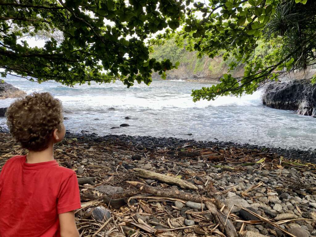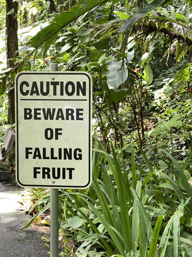 On voulait poursuivre ensuite sur le Onomea bay trail qui était supposé traverser le jardin. On avait d’ailleurs lu qu’il fallait commencer par le jardin car sinon un garde nous bloquait l’entrée si on ne présentait pas notre billet.