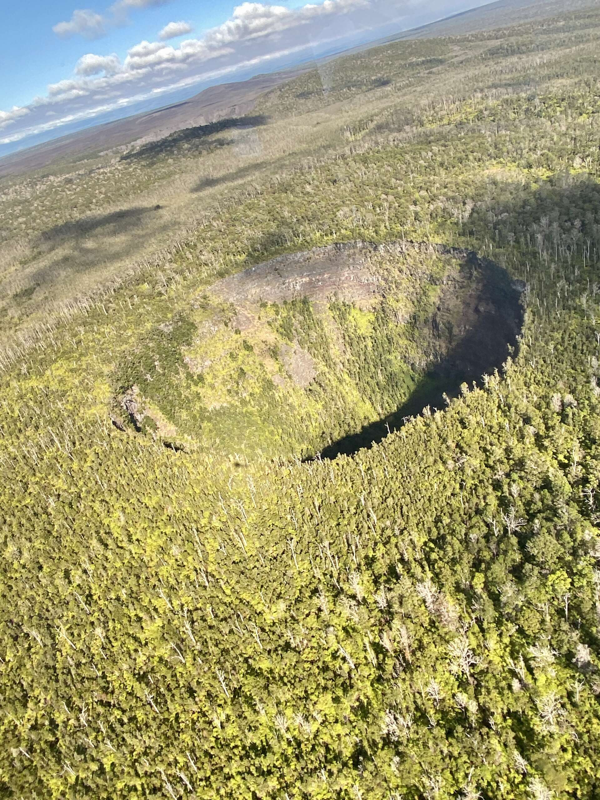Ici on est sur la zone de l’ile impactée par les nombreuses éruptions, dont celle de 2018. On a bien globalement une végétation dense de type tropicale / forêt primaire, mais d’en haut on voit les coulées de lave qui ont transpercé la végétation et laissés des zones désertiques au fil du temps.