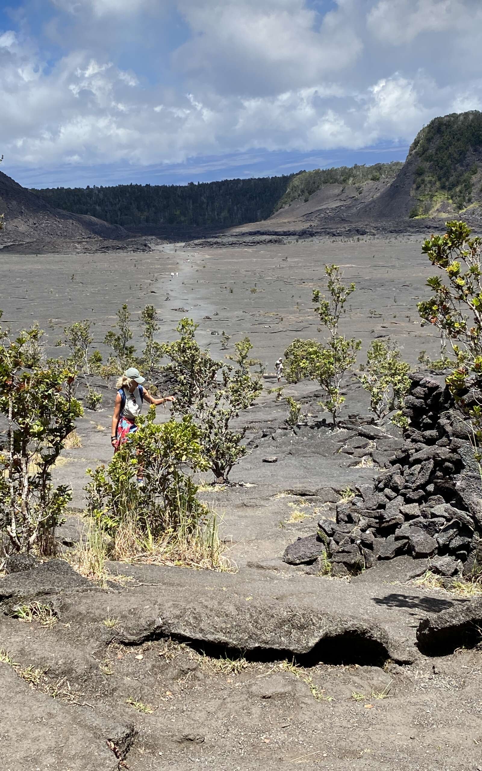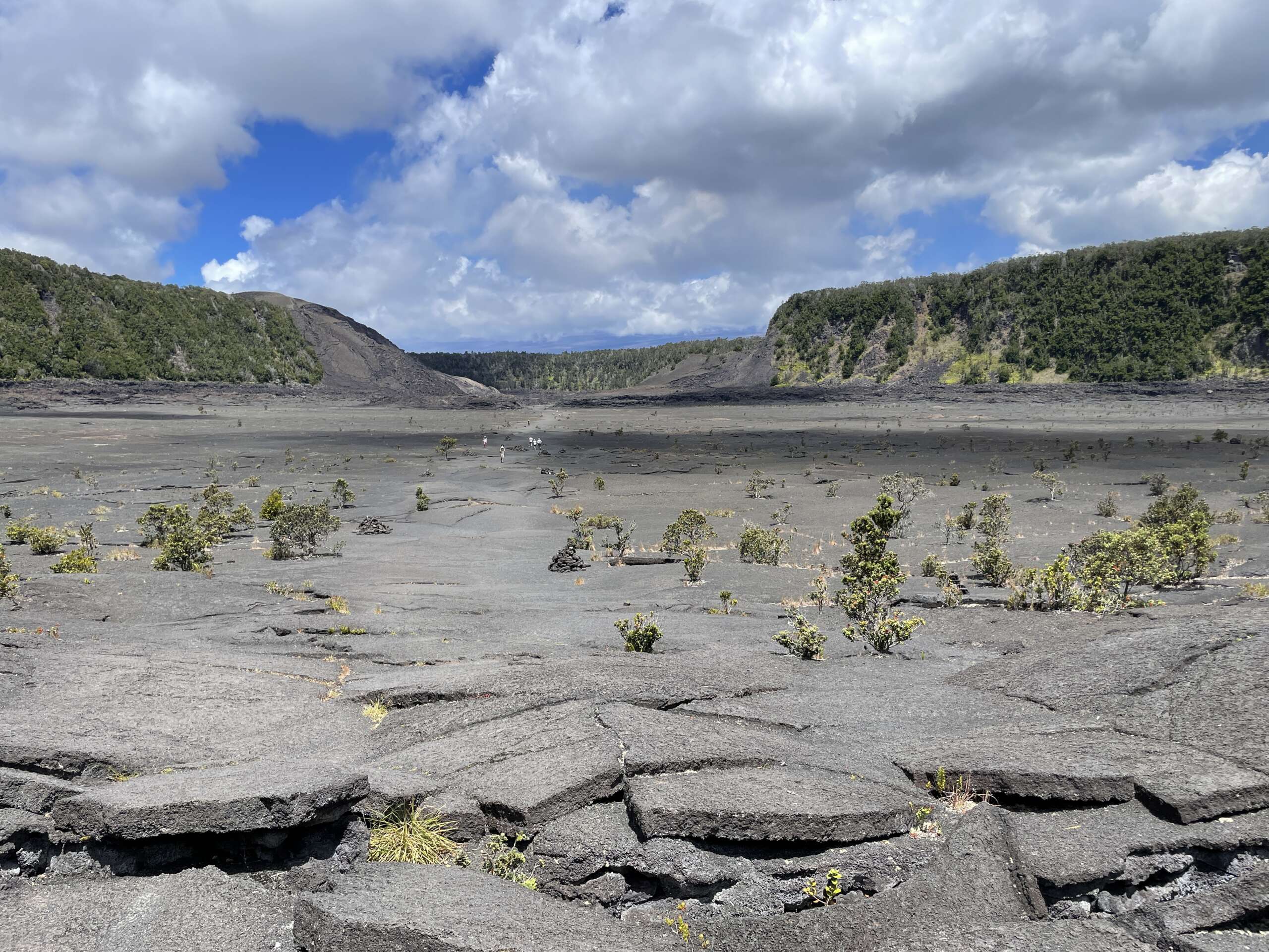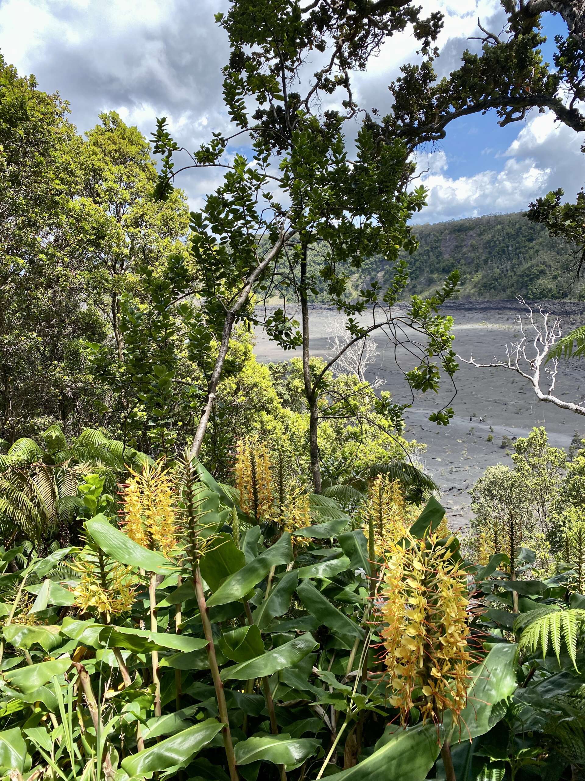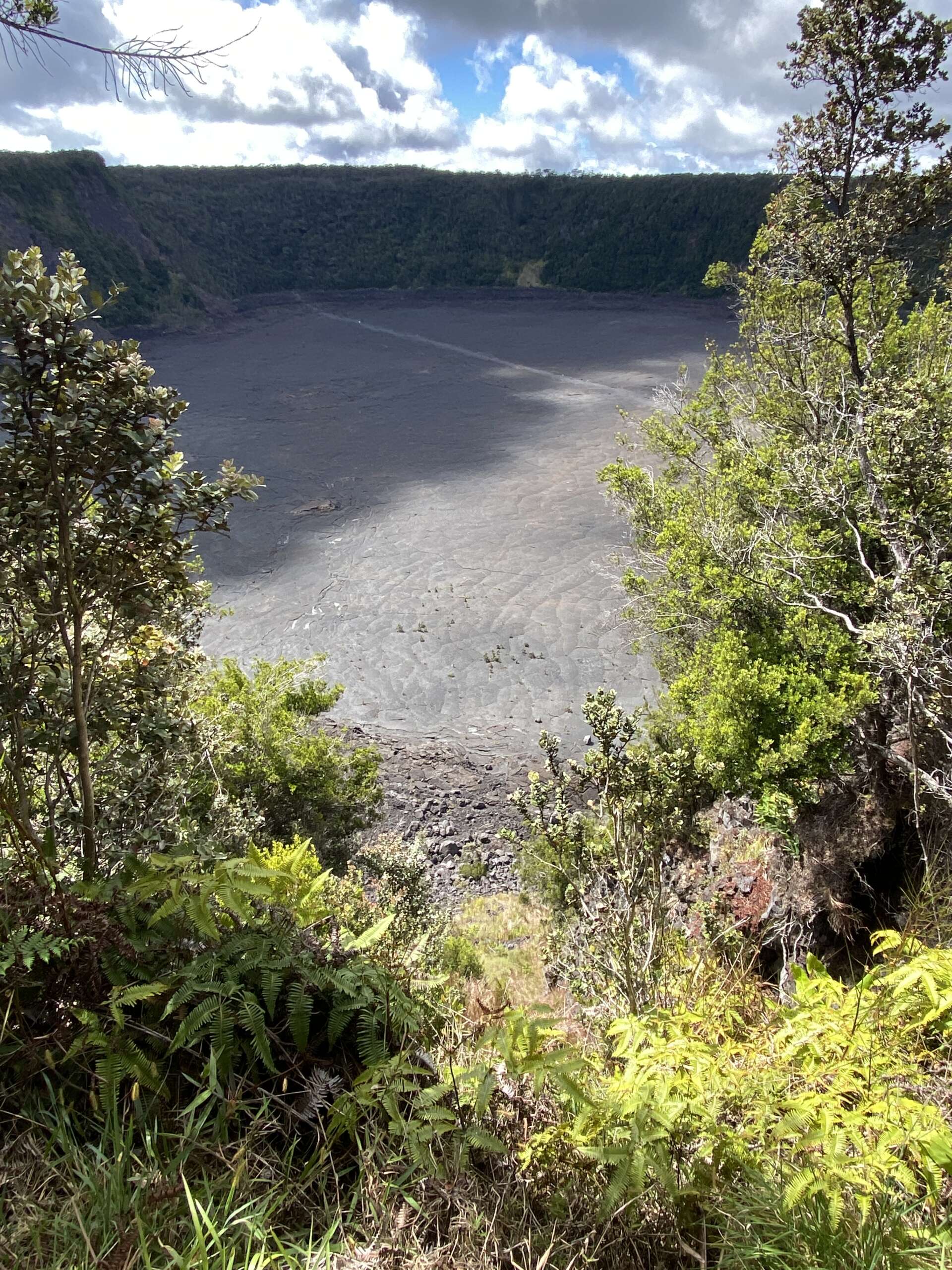 Dans un premier temps on a longé le cratère dans la forêt bien à l’abri de la chaleur avec ça et là des points de vue sur le fameux cratère autrefois rempli de lave avant de plonger dedans par un chemin étroit.