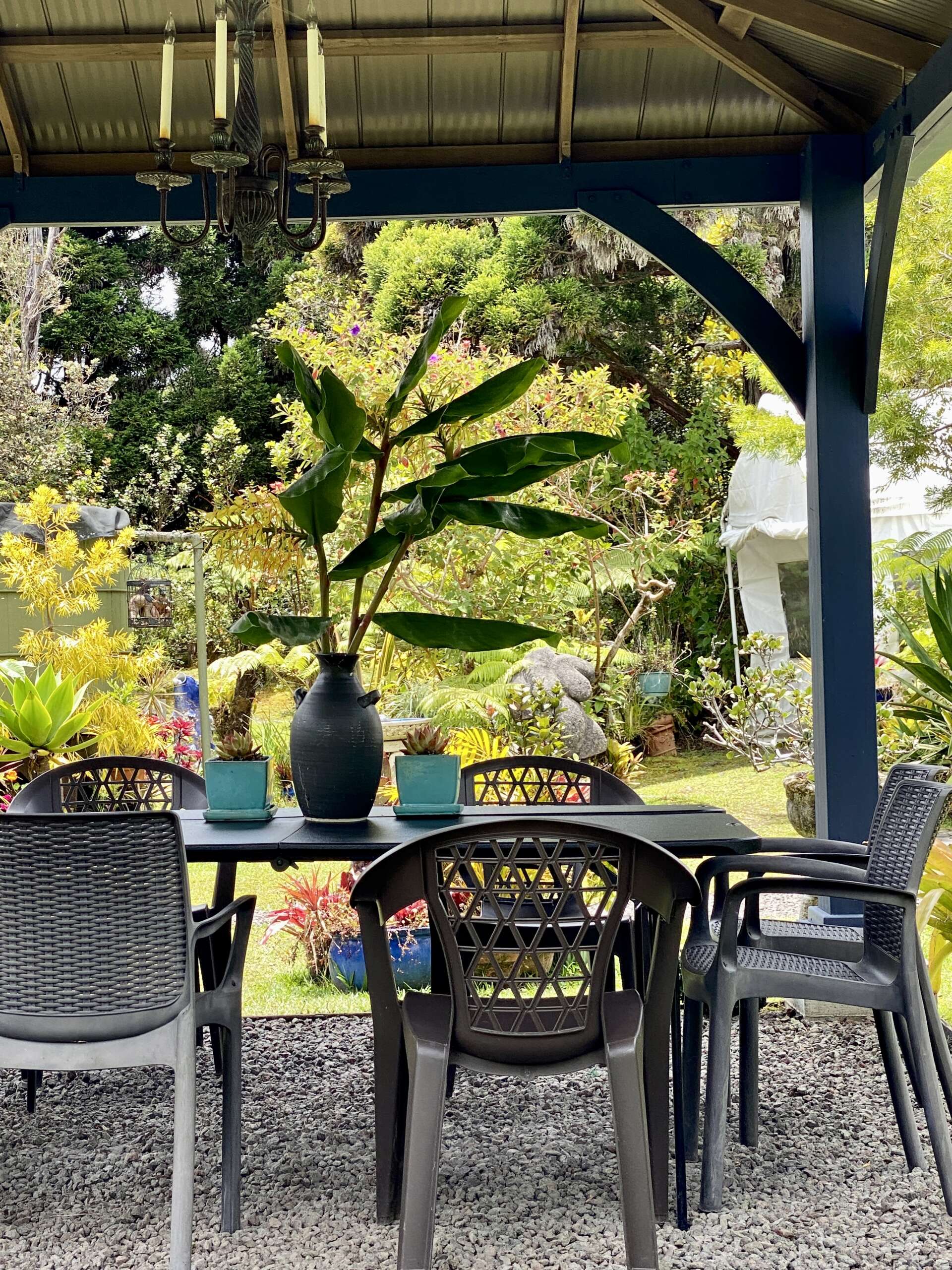 Avec tout cela, il est quand même 12h30 passé et contre toute attente, nous trouvons aux abords de Volcano Village, dans une impasse improbable, le Ono Café qui va s’avérer être autant une belle découverte gustative (rare à Hawaii depuis le début du séjour), qu’un endroit bucolique pour ponctuer notre matinée.