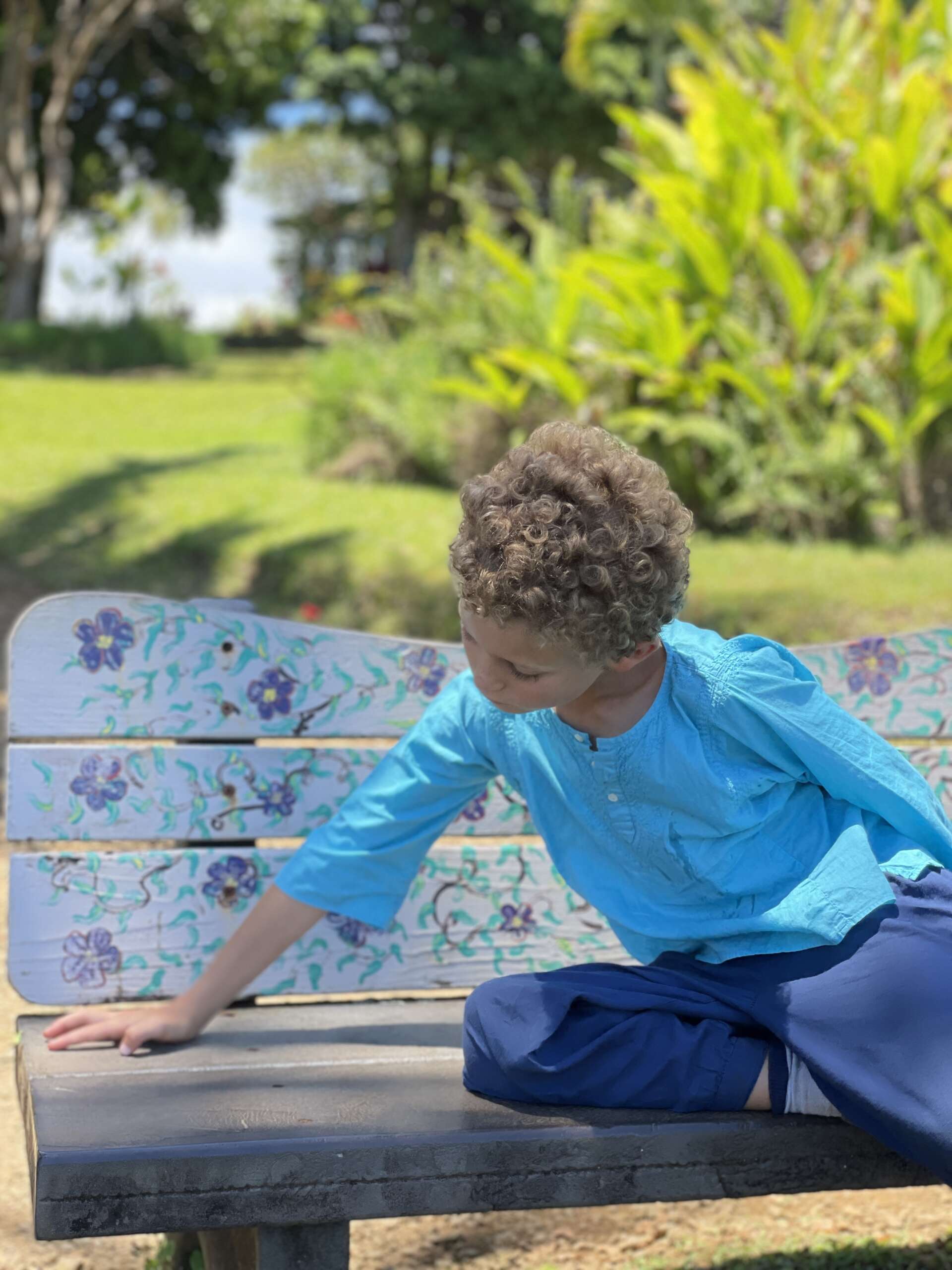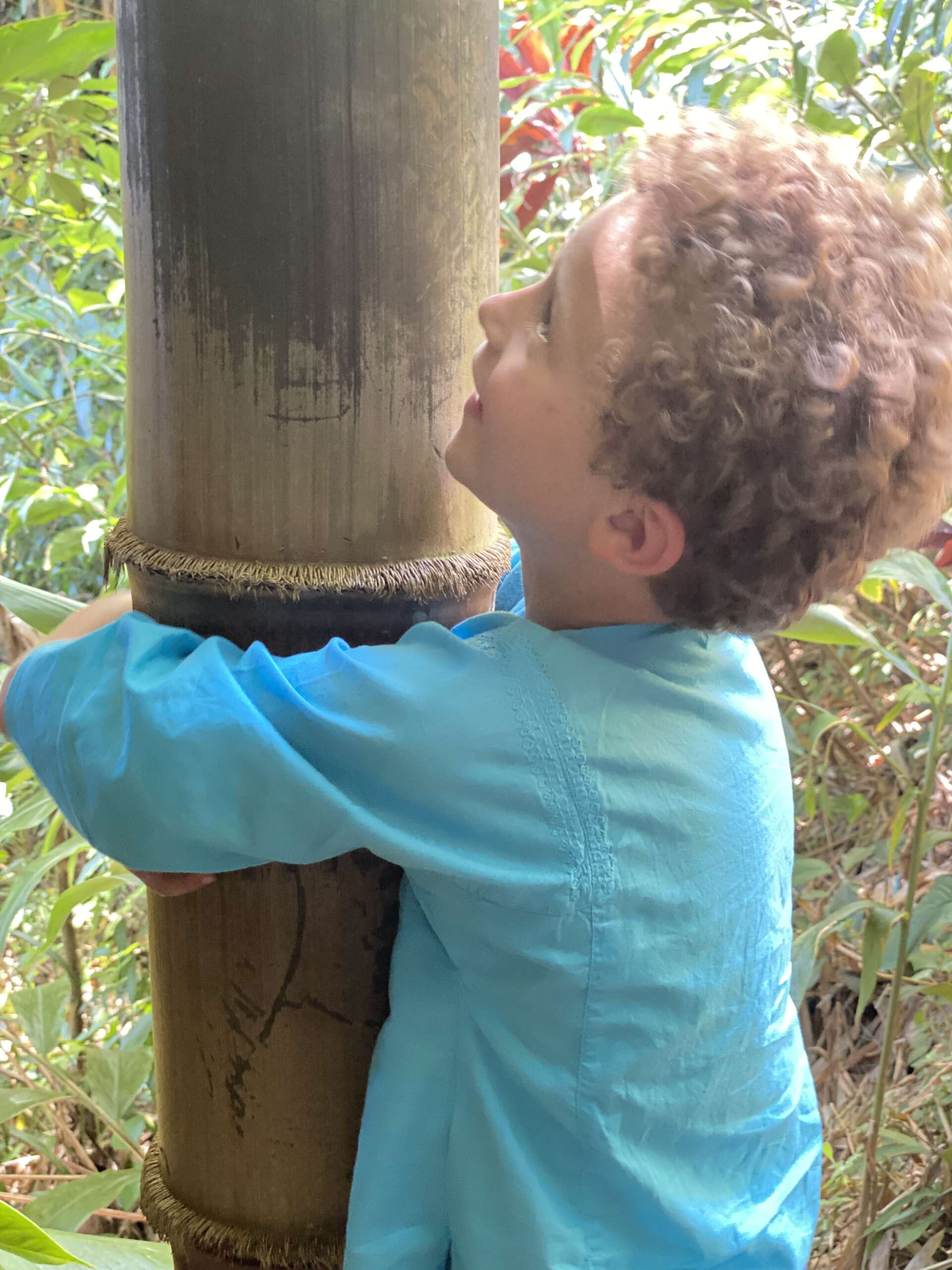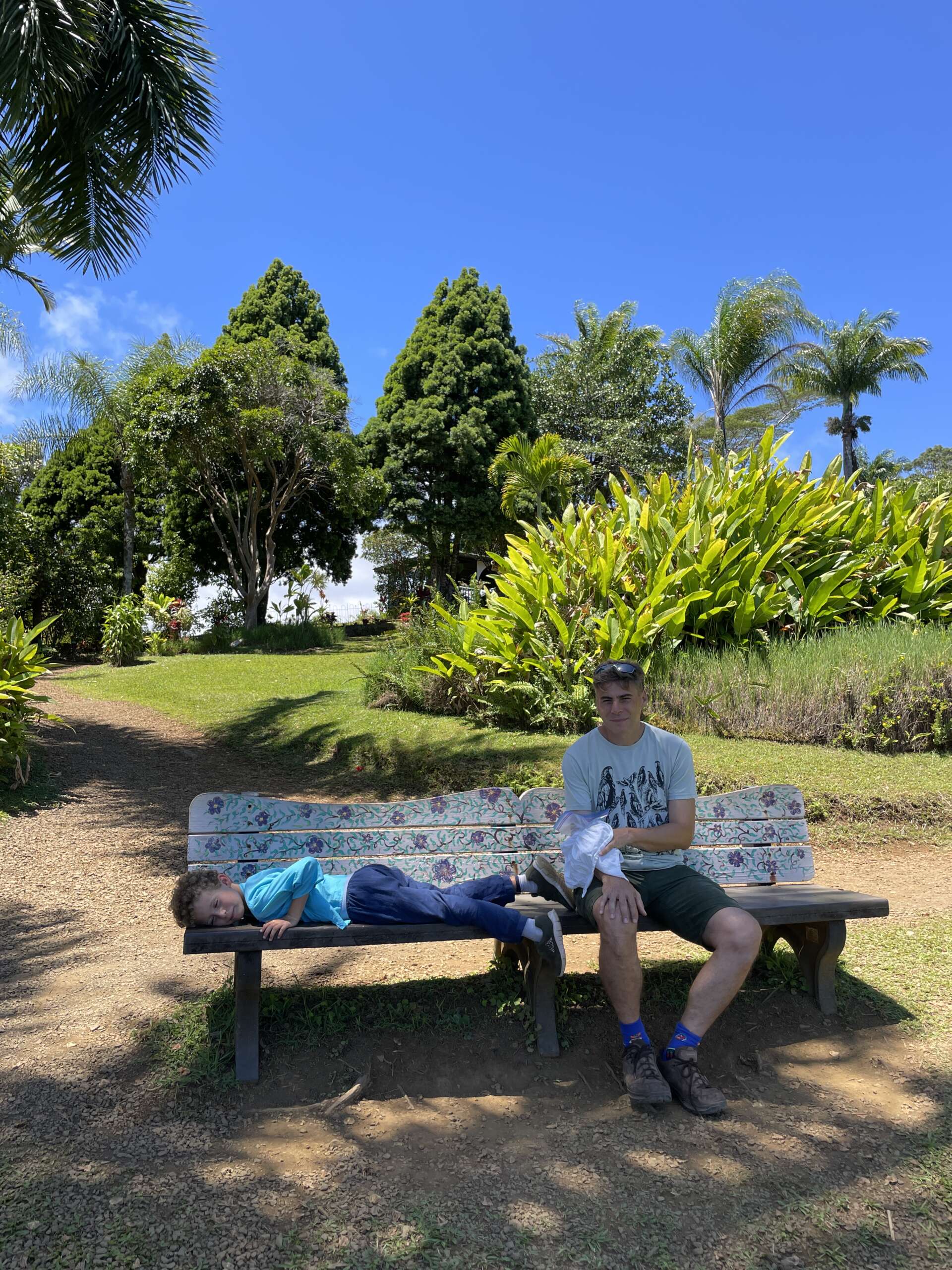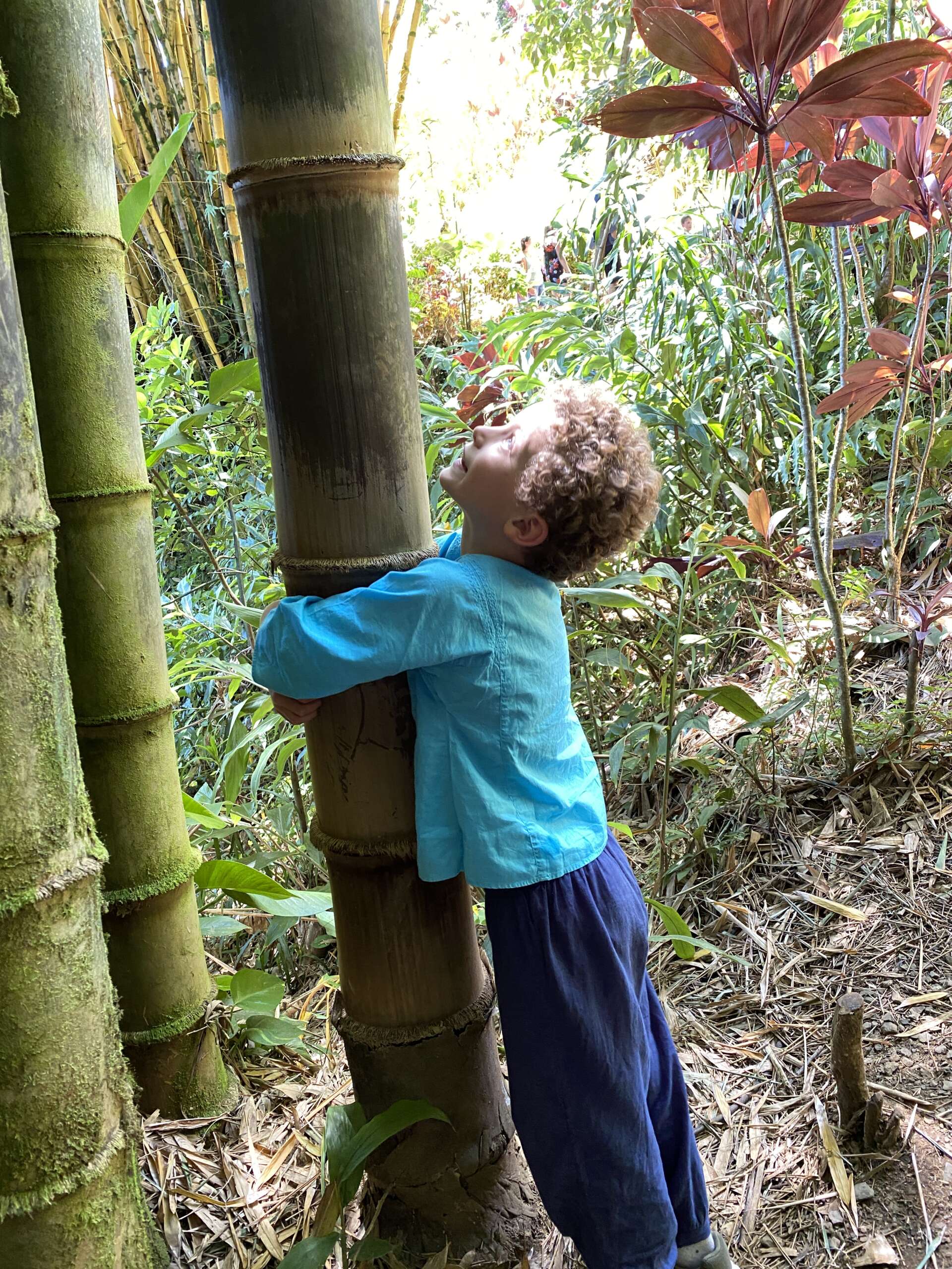 On a du mal à comprendre totalement le concept de ce jardin qui mélange des aires de pique-nique et de parking sans la moindre cohérence, mais malgré tout, au hasard de notre marche on tombe sur de très beaux points de vue sur l’océan, une cascade, une bambouseraie où Noah fera du tam tam en utilisant les différentes largeurs de bambous pour faire des notes.