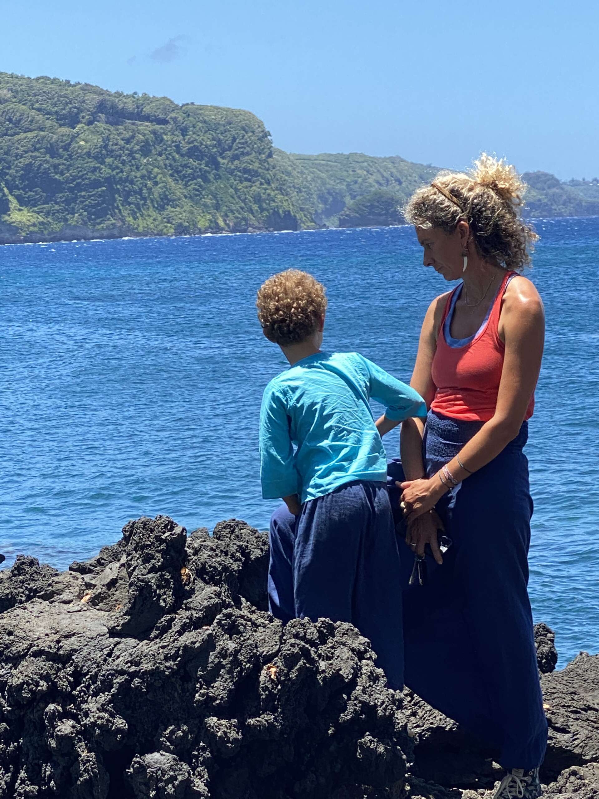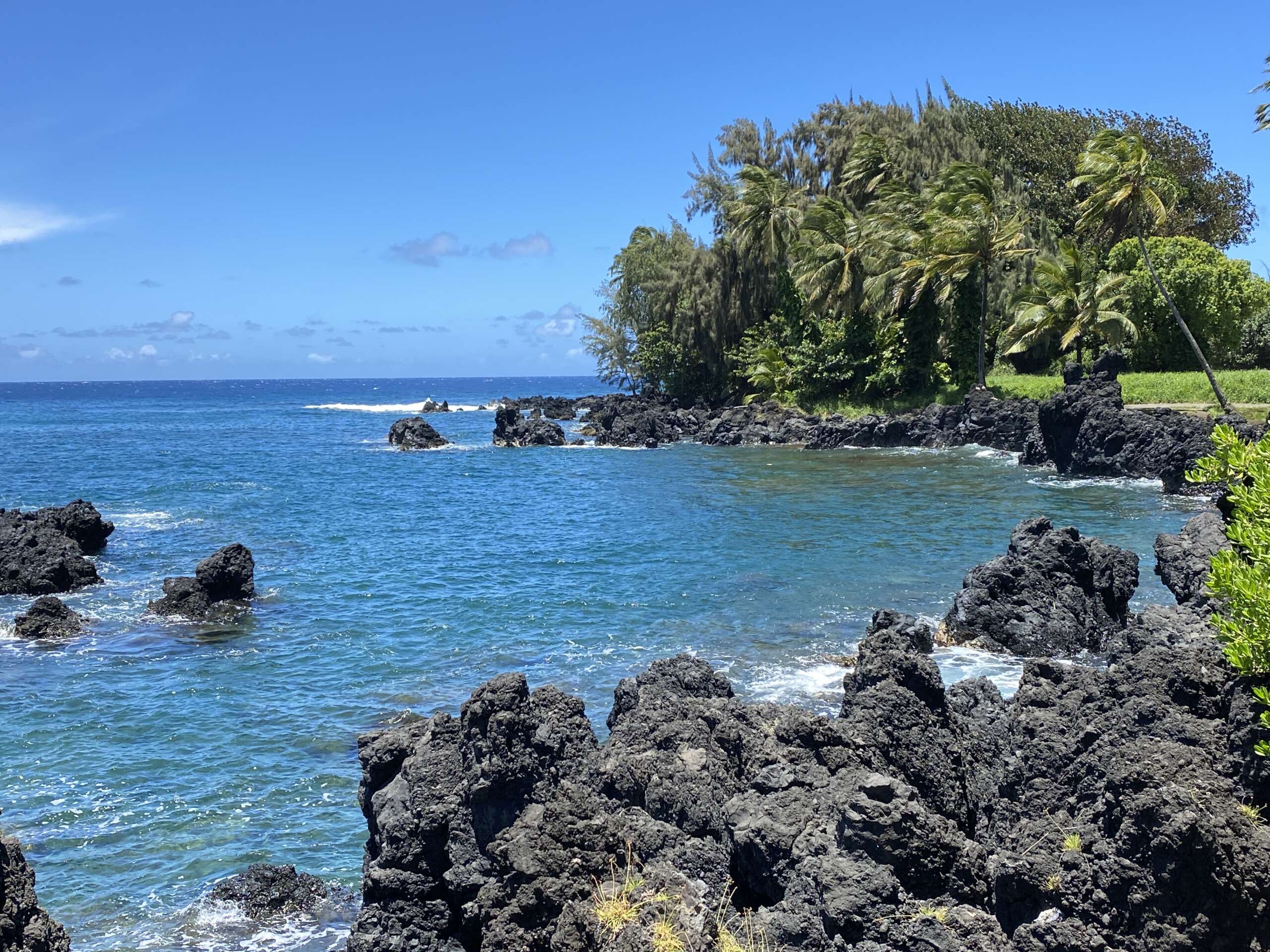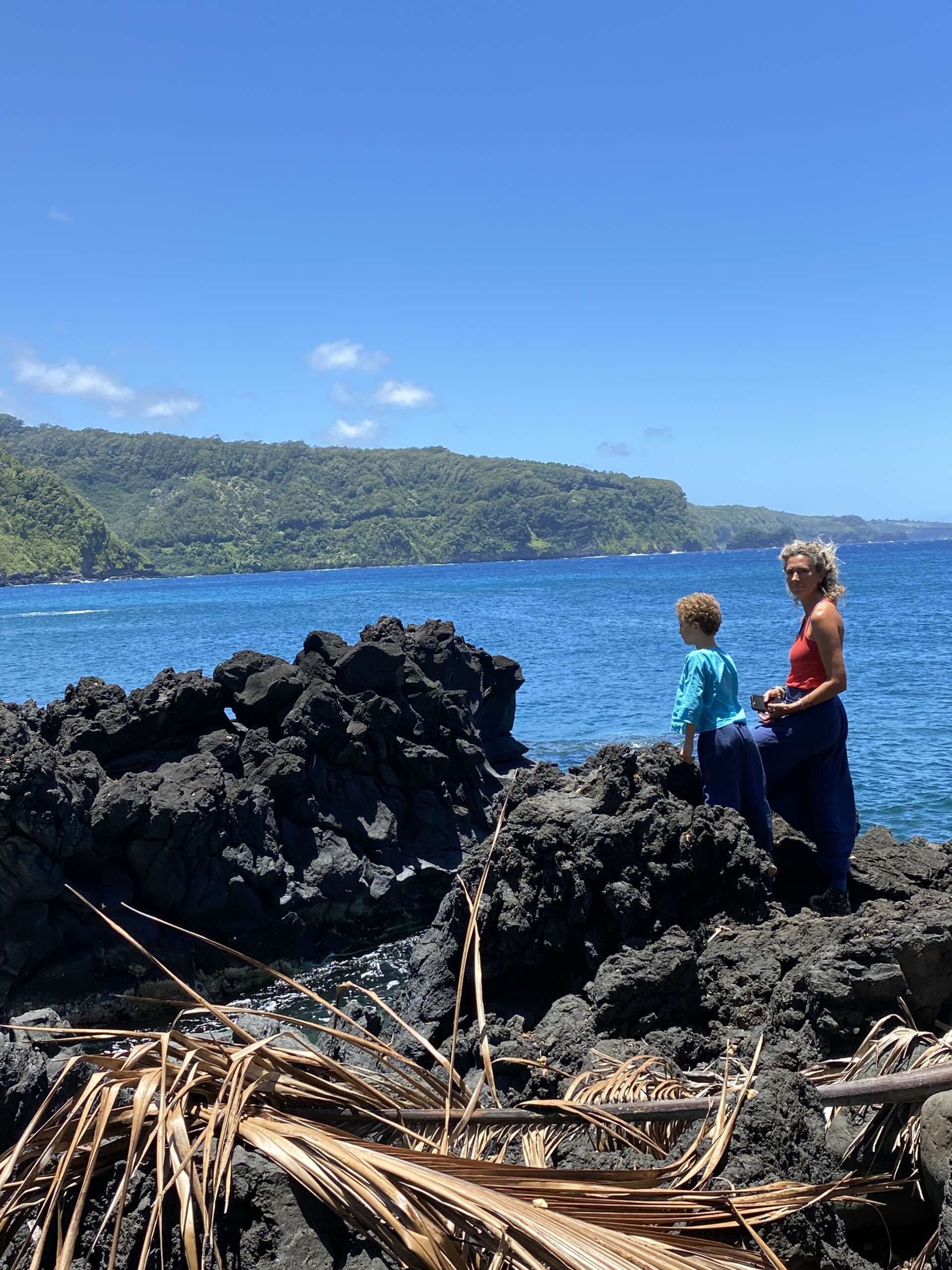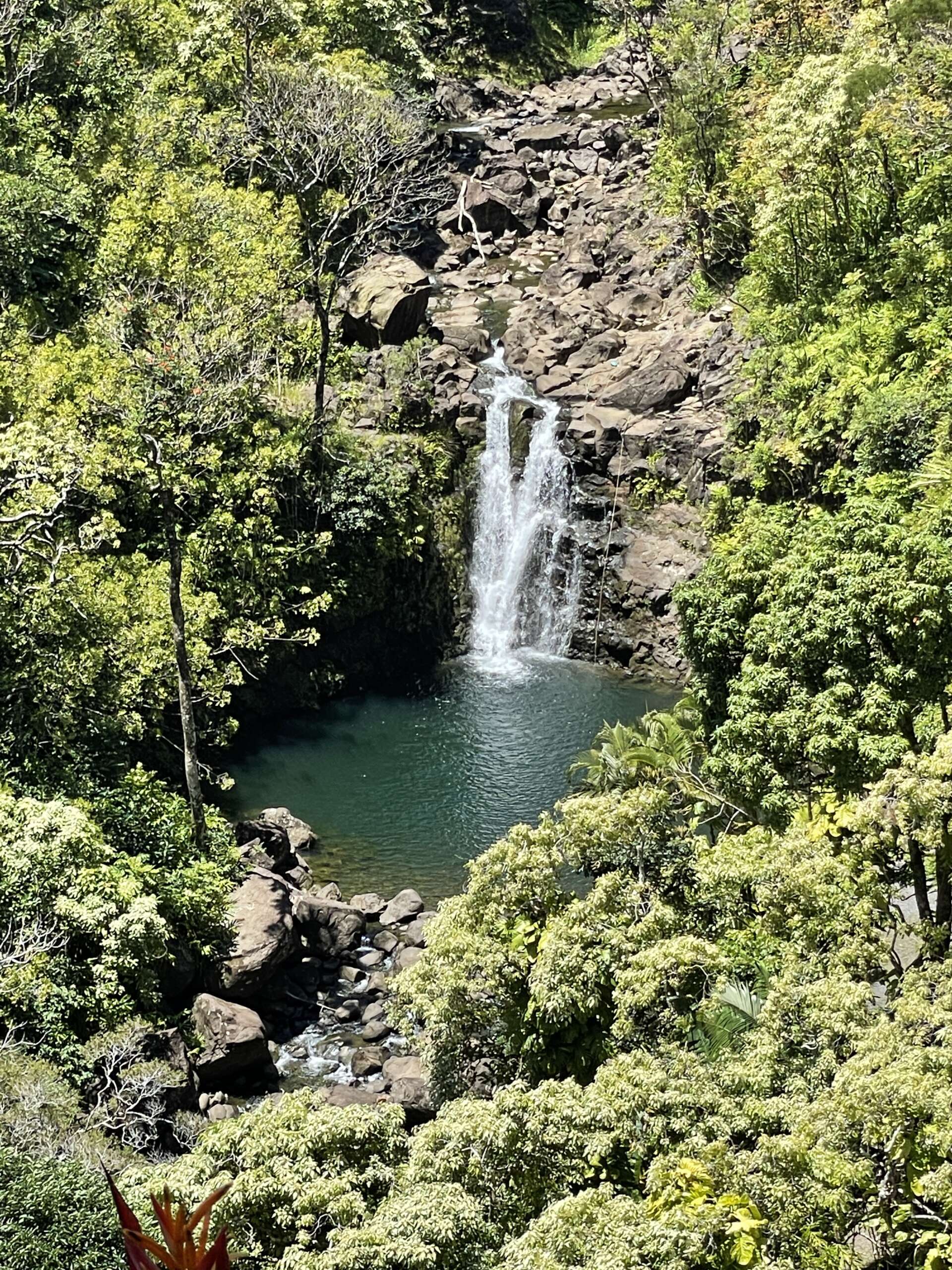 Un moment au final assez apaisant avant de réattaquer la route de Hana, d’autant que Virginie conduit seule, car je suis toujours incapable de tenir le volant de ma main droite et encore moins avec des têtes d’épingle tous les 50 mètres.