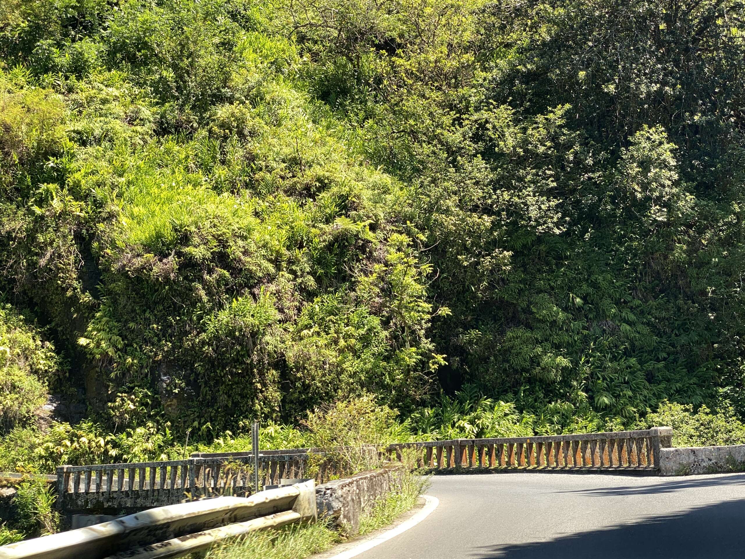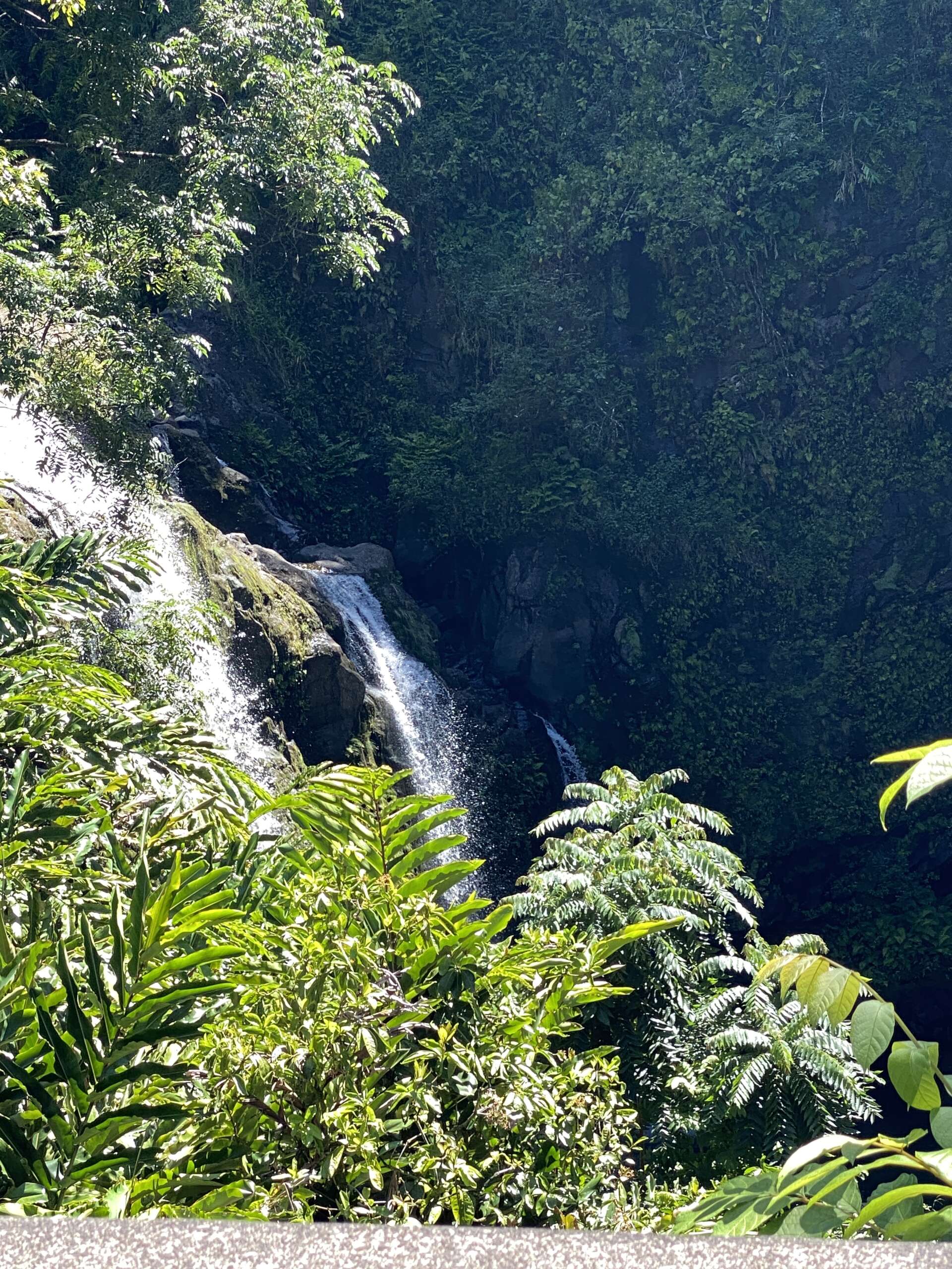 Noah entre temps s’est endormi, du coup on fait le premier tiers de la route de Hana avec certes des paysages époustouflants car on est en pleine jungle avec des traversées de ponts dans tous les sens le plus souvent au-dessus de rivières ou de cascades, mais avec un niveau de frustration énorme car on ne peut jamais s’arrêter nulle part.