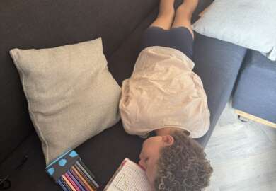 Noah, loin de râler (et pourtant il pourrait après près de 4h de route depuis ce matin), prend son carnet et ses feutres, escalade le toit de la voiture, et devant de nombreux indonésiens qui attendaient et qui désormais le regardent d’un air médusés, se met en tailleur à dessiner sur le toit. Bon évidemment, ceci dura un temps avant qu’il ne pique le téléphone de Virginie et ne bascule sur l’iphone…