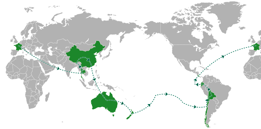 Hawaii, Japon (Kyoto, Tokyo, Naoshima, Yakusima), Philippines, Hong Kong, Chine (Région de Guangxi, Xi’ian, Pékin), Indonésie (Sumatra, Flores)