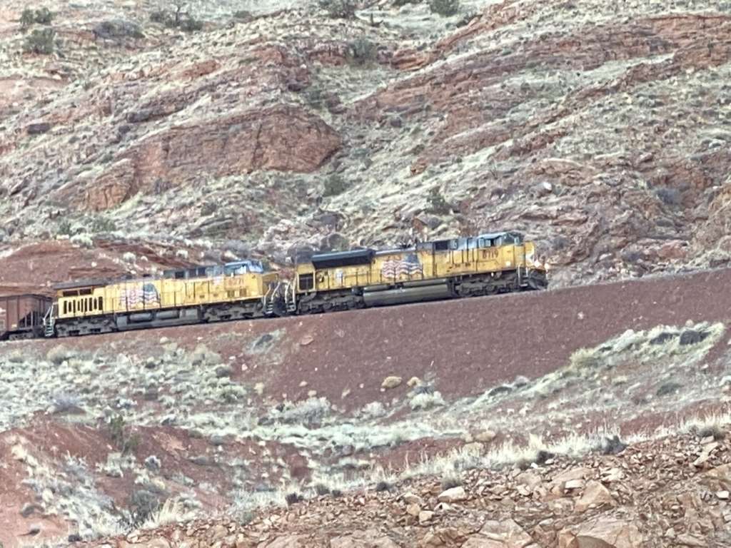 Retour à la nuit tombante et sur le chemin, on tombe sur le train de marchandise qu’on avait entendu hier soir sous la tente. Il doit bien faire 2km de long. Noah n’en revient pas.