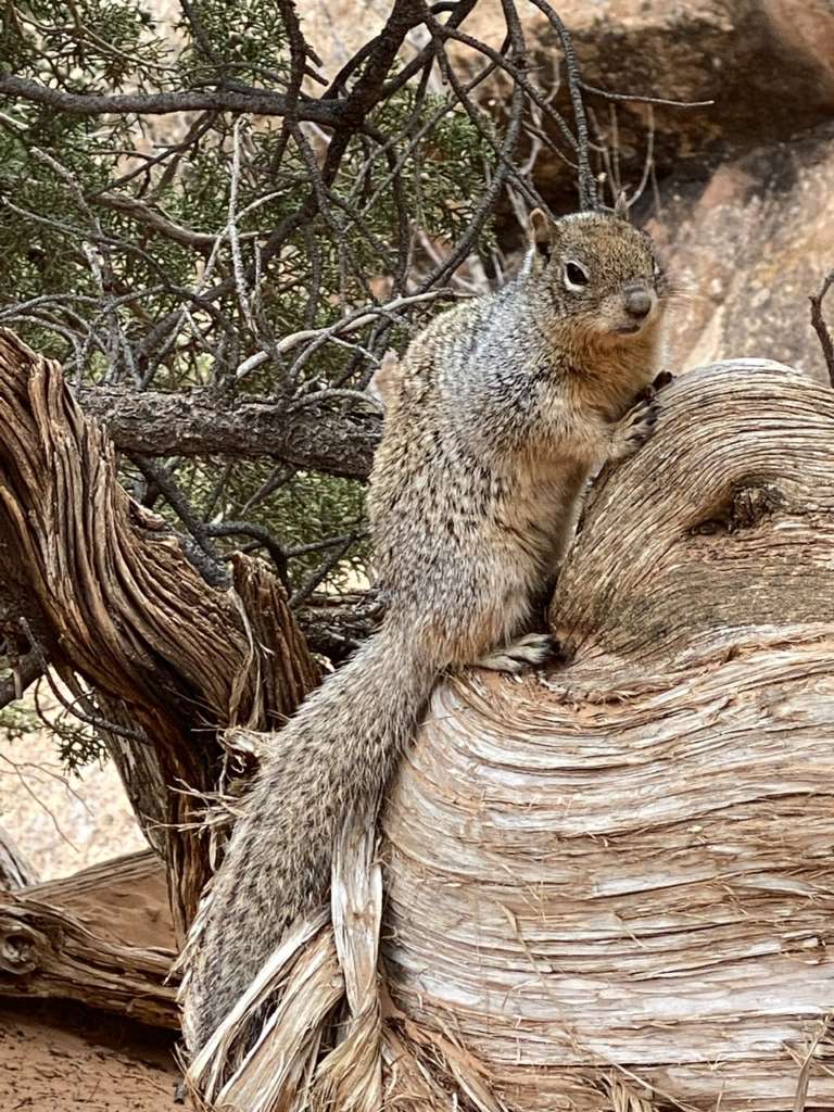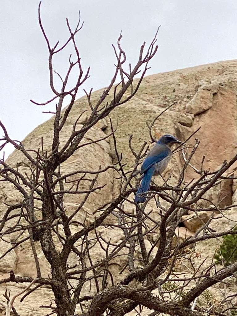 On reste quand même un peu là-bas et on grignote un truc. On croise un Tamias qui essaye de nous chaparder de la bouffe, et un de ces oiseaux bleus dont le nom m’échappe.