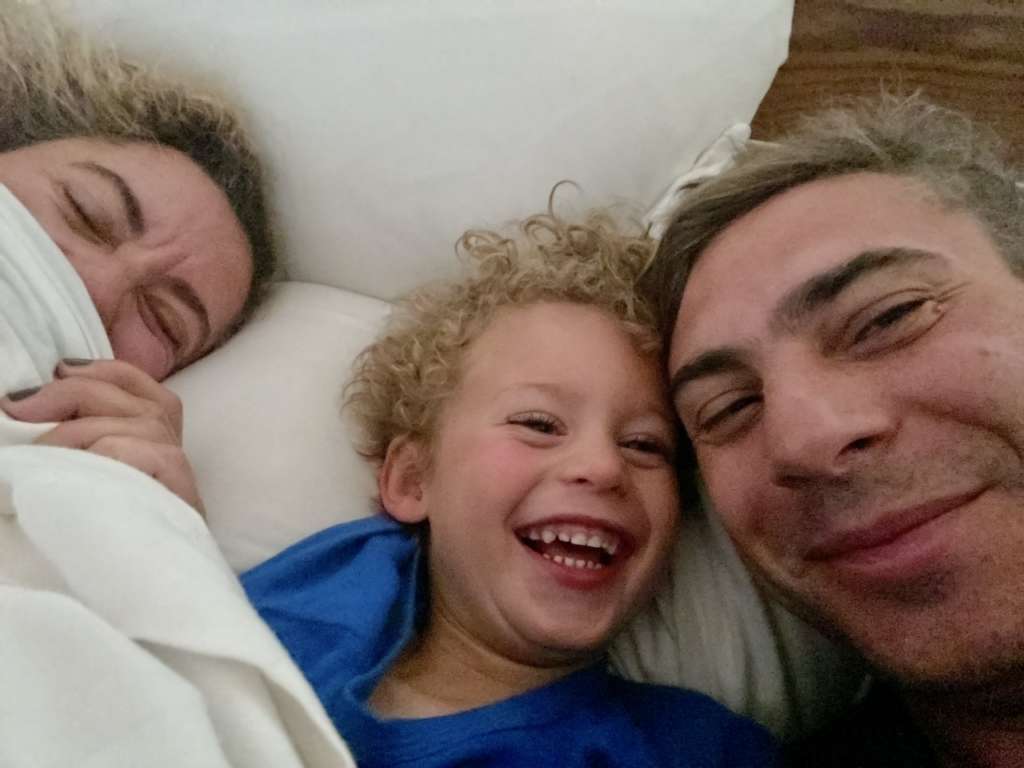7h30, Noah se réveille, aux anges. Il adore dormir sous la tente et se déclare « chaud comme une petite caille ». Reste qu’il va bien falloir sortir du lit à un moment ou à un autre. Pour savoir qui va se lever pour chercher les habits de Noah et l’habiller dans le lit, à la manière des milles bornes, nous nous liguons tout naturellement avec Noah contre Maman. « Noah, et si on votait à la majorité qui va se lever du lit en premier? ». « Moi je dis maman. Et toi, Noah ? ». Énorme sourire de Noah d’une oreille à l’autre « C’est maman ». Et voila. En même temps, vous vous doutez bien que le super look de Noah sur les photos depuis qu’on est parti ne vient pas du choix vestimentaire que je fais pour lui chaque matin, donc de toute façon c’était à Virginie d’y aller. Mais c’est quand même plus marrant comme cela.