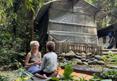 Pendant notre visite du village, Virginie jette son dévolu sur un sarong bleu qui, c’est vrai, magnifique, tandis que Noah se dirige vers une écharpe. Mais pour la première fois du séjour, on nous sort des prix 3 fois au-dessus de ce qu’on avait vu dans les marchés. D’habitude le charme opère mais là ils sont inflexibles sur les prix, nous aussi. On repart bredouille d’autant que de toute façon à ces prix-là on n’avait même pas le cash sur nous !