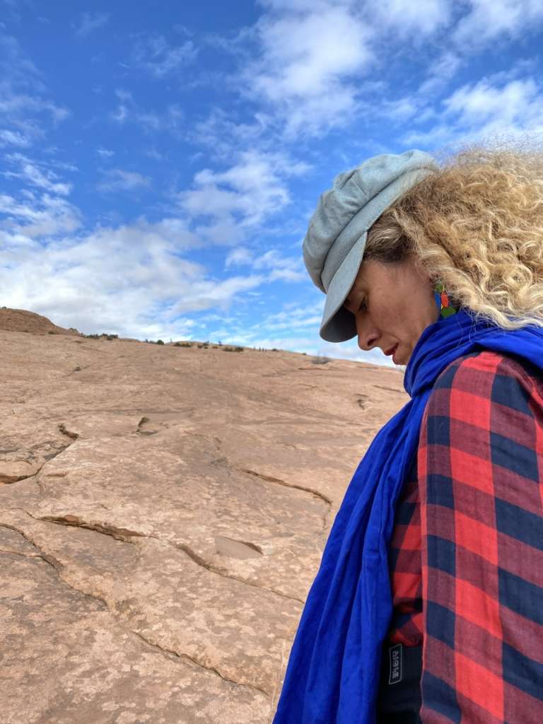 Moi, ce truc me rappelle une discussion lue sur un blog comme quoi juste avant d’arriver à l’Arche délicate il y a un point de vue incroyable non indiqué que tout le monde rate. Ce n’’était pas très explicite et je ne sais pas si on est encore loin ou non de Délicate Arch, mais quelque chose me dit que c’est peut-être en escaladant ce rocher et en allant sous cette petite arche qu’il y a le point de vue en question.