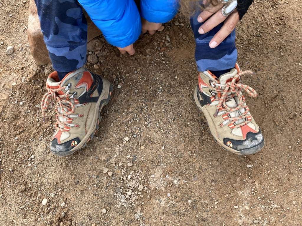 Bref pendant qu’on philosophe sur le sujet en regardant l’enfant Qui marche décidément n’importe comment, Virginie remarque que j’ai tout simplement mis les chaussures de Noah à l’envers à sa sortie de sieste et que ca fait donc 1h qu’il marche comme ça. Oups.