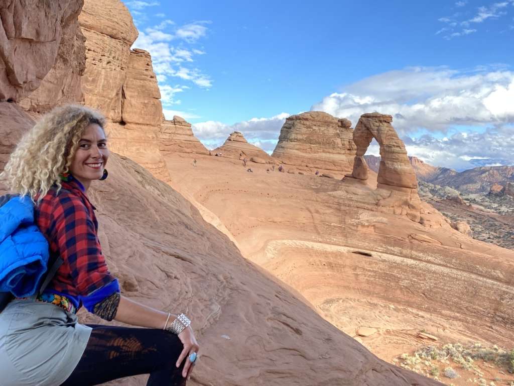 J’appelle Virginie qui se fait aider pour monter et nous rejoindre. Ca y est. On est définitivement réconciliés avec les arches. D’ici, le panorama à cette heure-ci est époustouflant. La nature fait bien les choses, et on n’est pas peu heureux de pouvoir rester tous les 3 une bonne vingtaine de minute sur ce mini-perchoir sans la moindre randonneur.