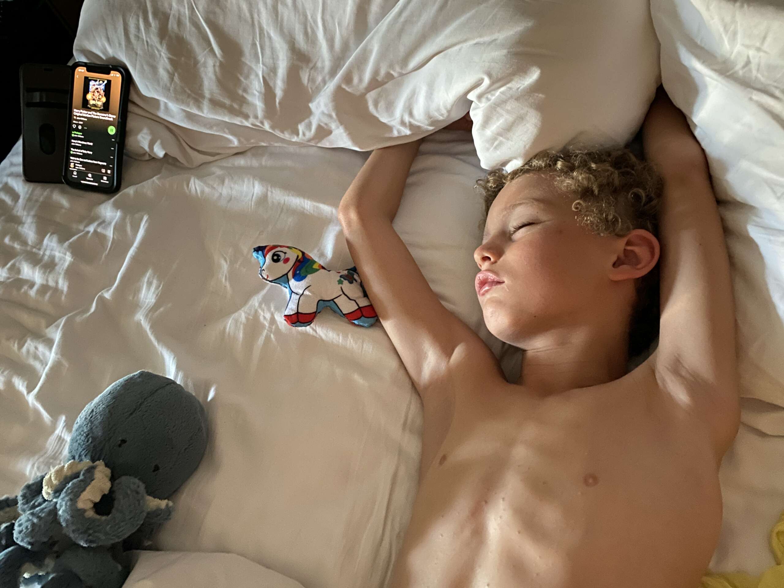 22h bien passés à l’hôtel, Noah s’endort avec sa baguette magique sur la table de chevet. On est curieux de savoir de quoi il rêvera cette nuit.