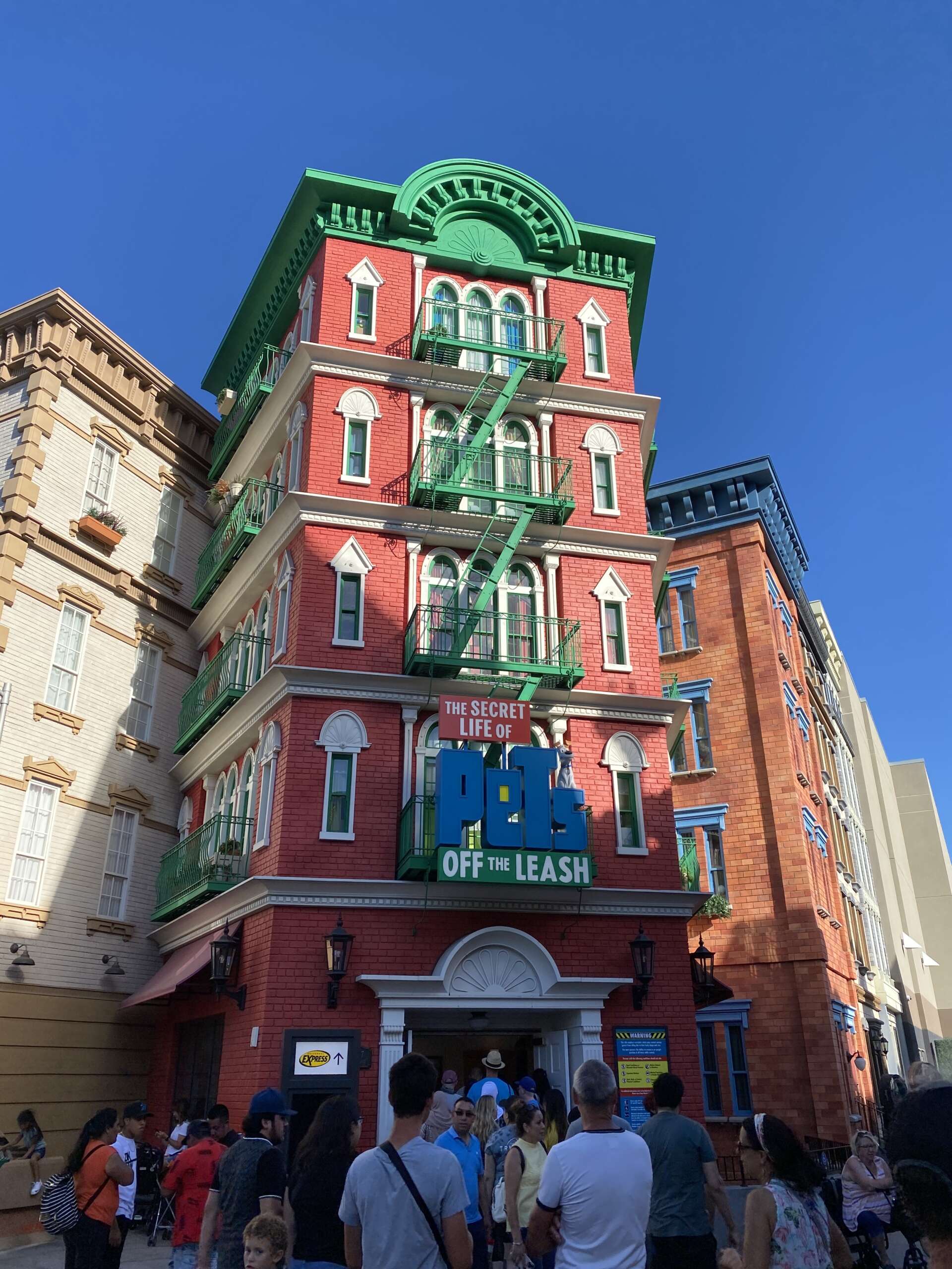 Voila il est presque 18h, on a réservé l’attraction « the secret life of pets » tiré d’un dessin animé que Noah aime bien car sinon on ne pouvait pas y aller. On se fait un peu couillonner car il y a en fait malgré cela près de 45 minutes de queue sauf que tu rentres dans un bâtiment ou tu passes de pièces en pièces avec de beaux décors et des petites animations bien pensées pour faire patienter mais dans lesquelles au final tu es incapable de savoir où tu en es dans le temps d’attente.  Arrivés à l’attraction, on est un peu dans l’esprit pirate des caraîbes ou on navigue dans des petites voitures au milieu de très beaux décors. C’est très reposant et féérique. Avec Noah on adore, sauf que Virginie nous avouera à la fin qu’elle s’attendait à tout moment à ce que ça dégénère en montagne russes et du coup elle n’a pas apprécié à sa juste valeur alors que c’est typiquement ce qu’elle aime.