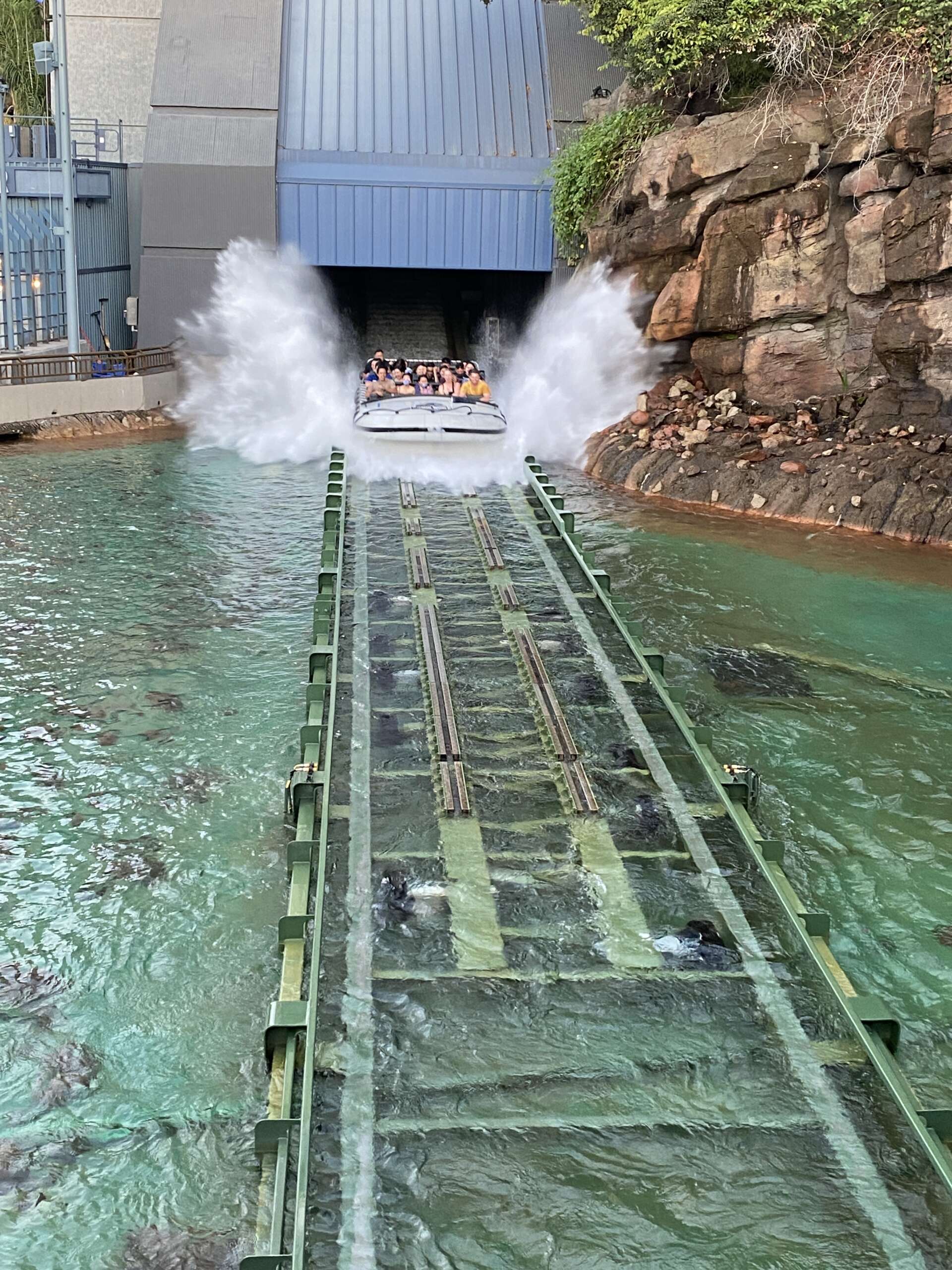 Noah avait fait une attraction de ce type à Sea world et avait eu la trouille de sa vie. Bon il avait 4 ans et on avait du le faire se hisser sur la pointe des pieds pour passer la barre de la taille minimum à l’époque. On était au premier rang tous les deux et après le splash son cœur battait tellement fort que j’ai cru qu’il allait s’arrêter. Inutile de dire que la suite de la montagne russe avait été un peu difficile.