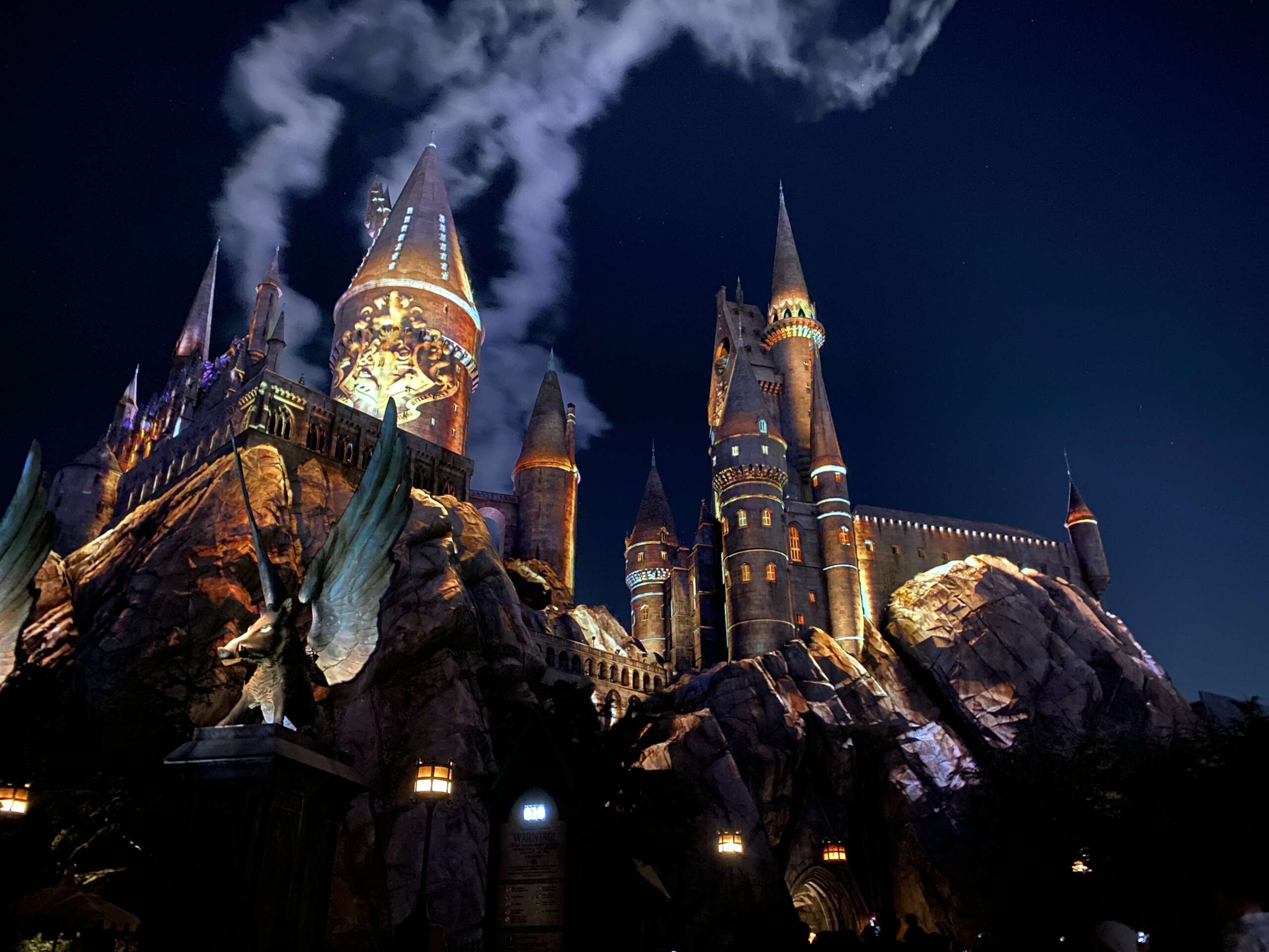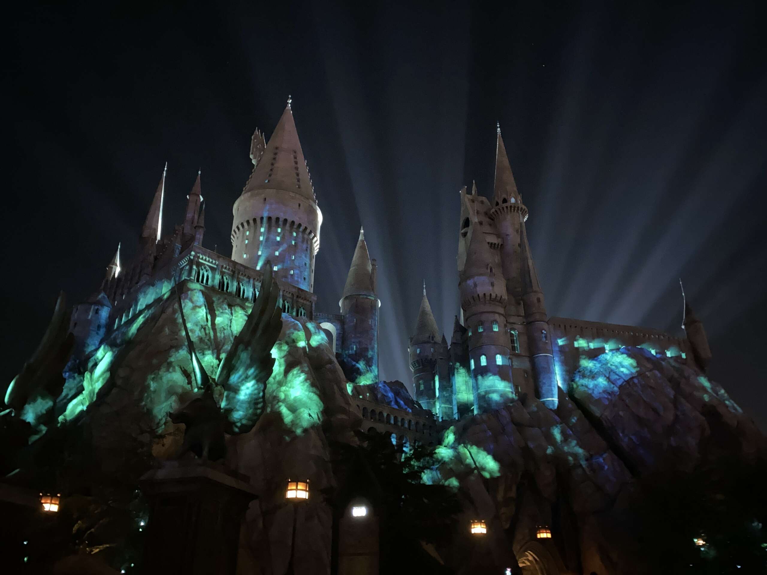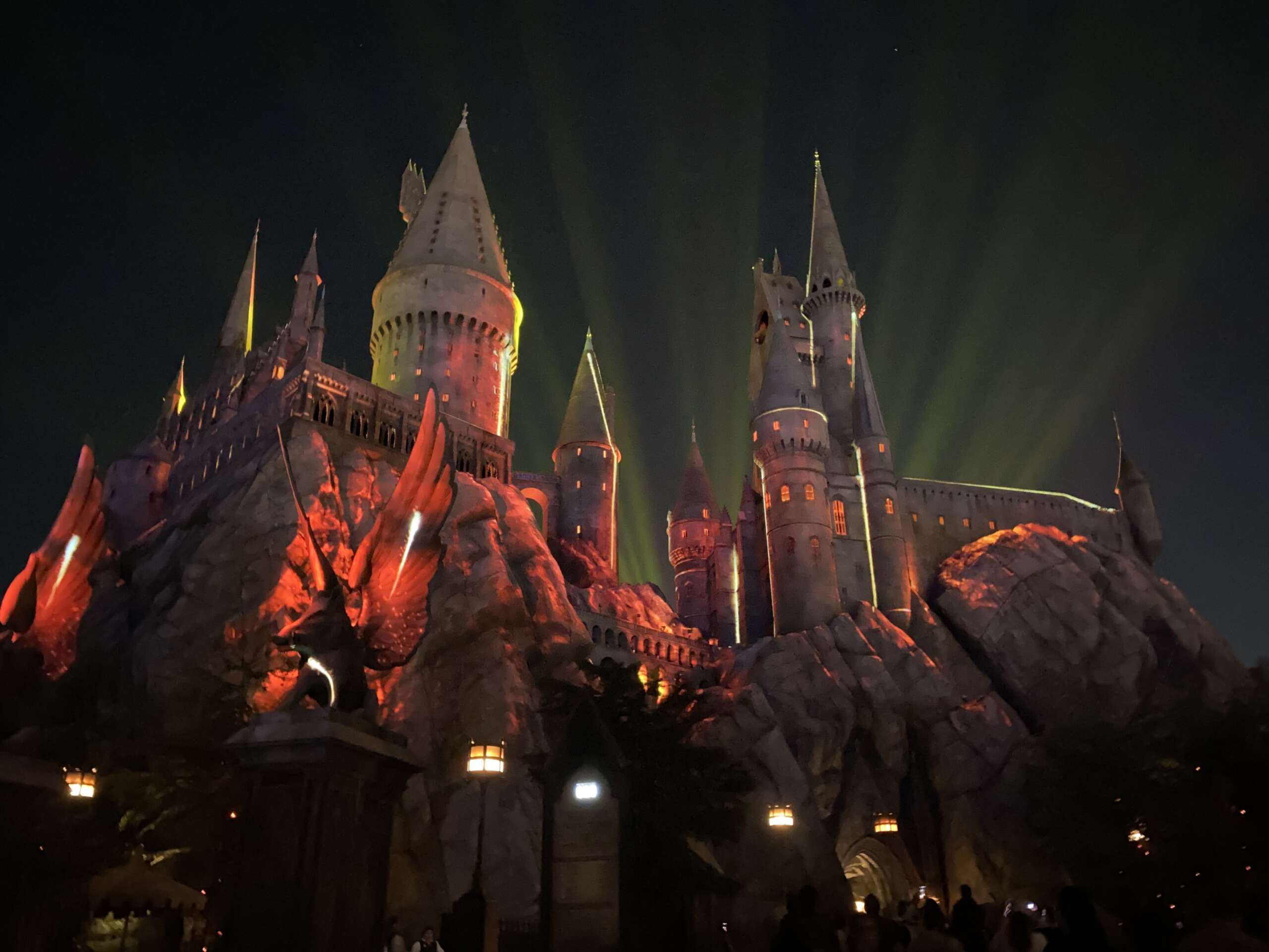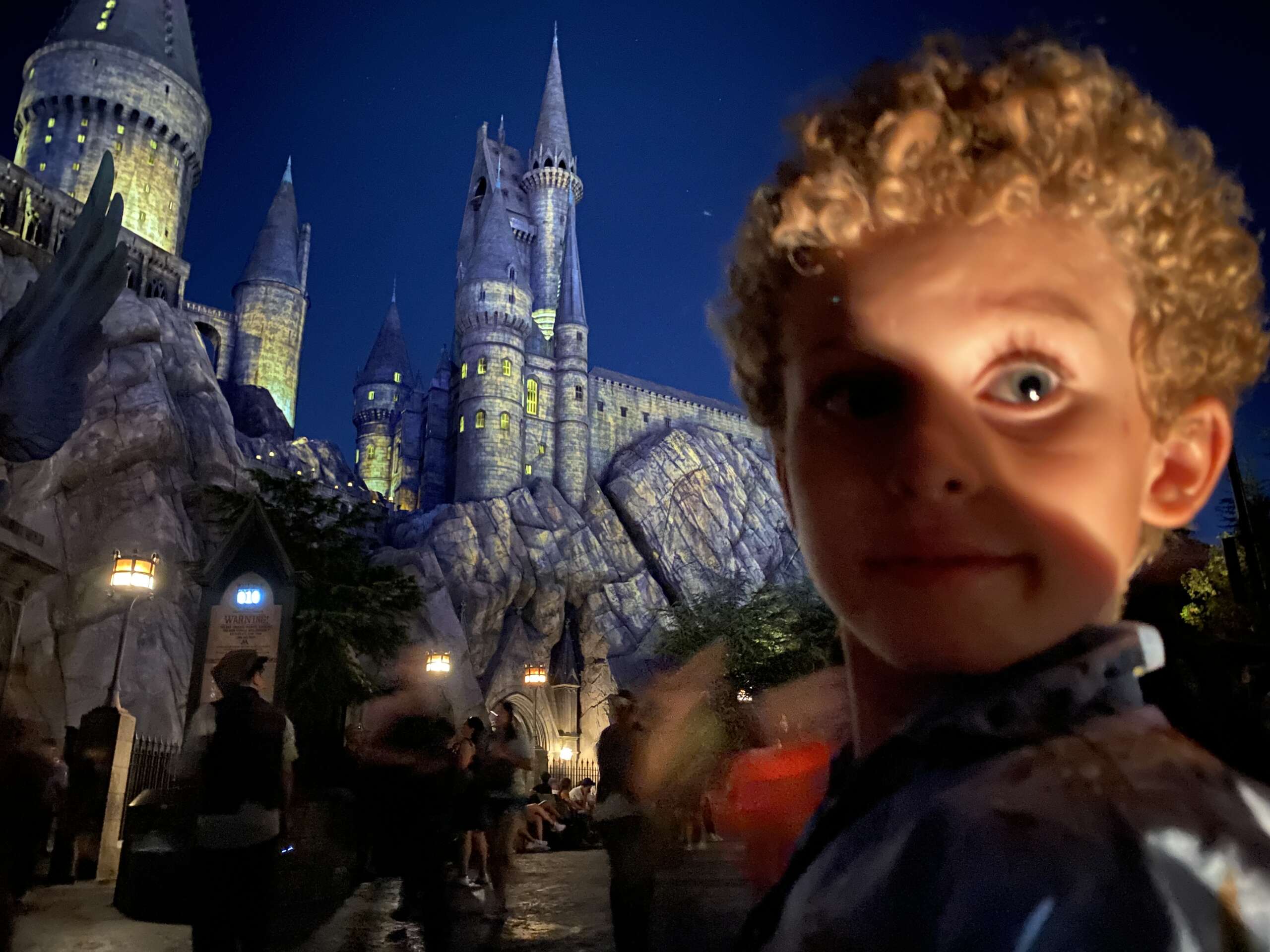Il est 20h, et ayant abandonné toute idée de faire un bon dîner dans un restau de L.A, on se dit qu’on n’a qu’à attendre 40 minutes pour le feu d’artifice au-dessus du château de Poudlard. Après avoir mangé un truc insipide et fait quelques tours supplémentaires avec la baguette magique dont celle qui fait trop peur à Noah de déclencher des hurlements et du feu sous une très grande porte, on joue des coudes pour se retrouver au premier rang pour le feu d’artifice. Beau spectacle qui plait d’autant plus à Noah qu’Harry Potter, il connaît pour avoir vu 5 des 7 épisodes.