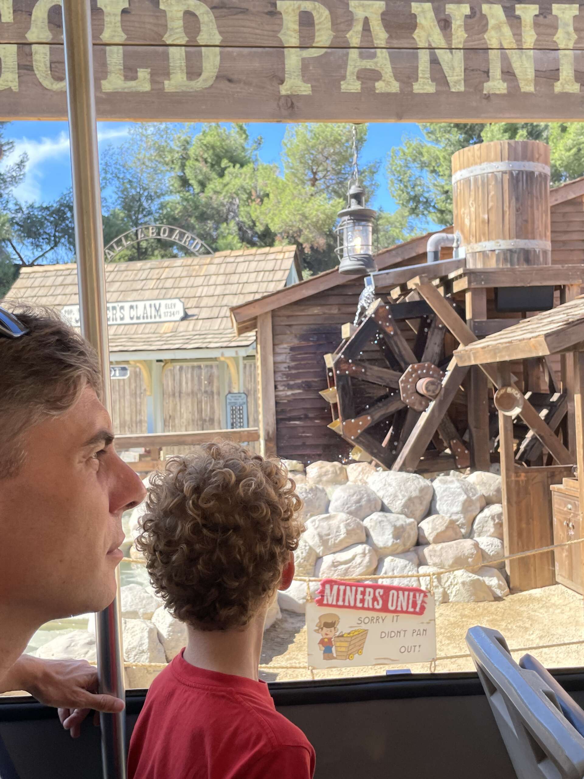 Voila, nous sommes enfin installés dans les bateaux sur rail. Je me suis fait un peu engueuler par la nana qui nous avait placés en première ligne du train car dans son dos, je nous avais placé d’autorité ensuite en seconde ligne en me disant que ce serait moins impressionnant pour Noah.