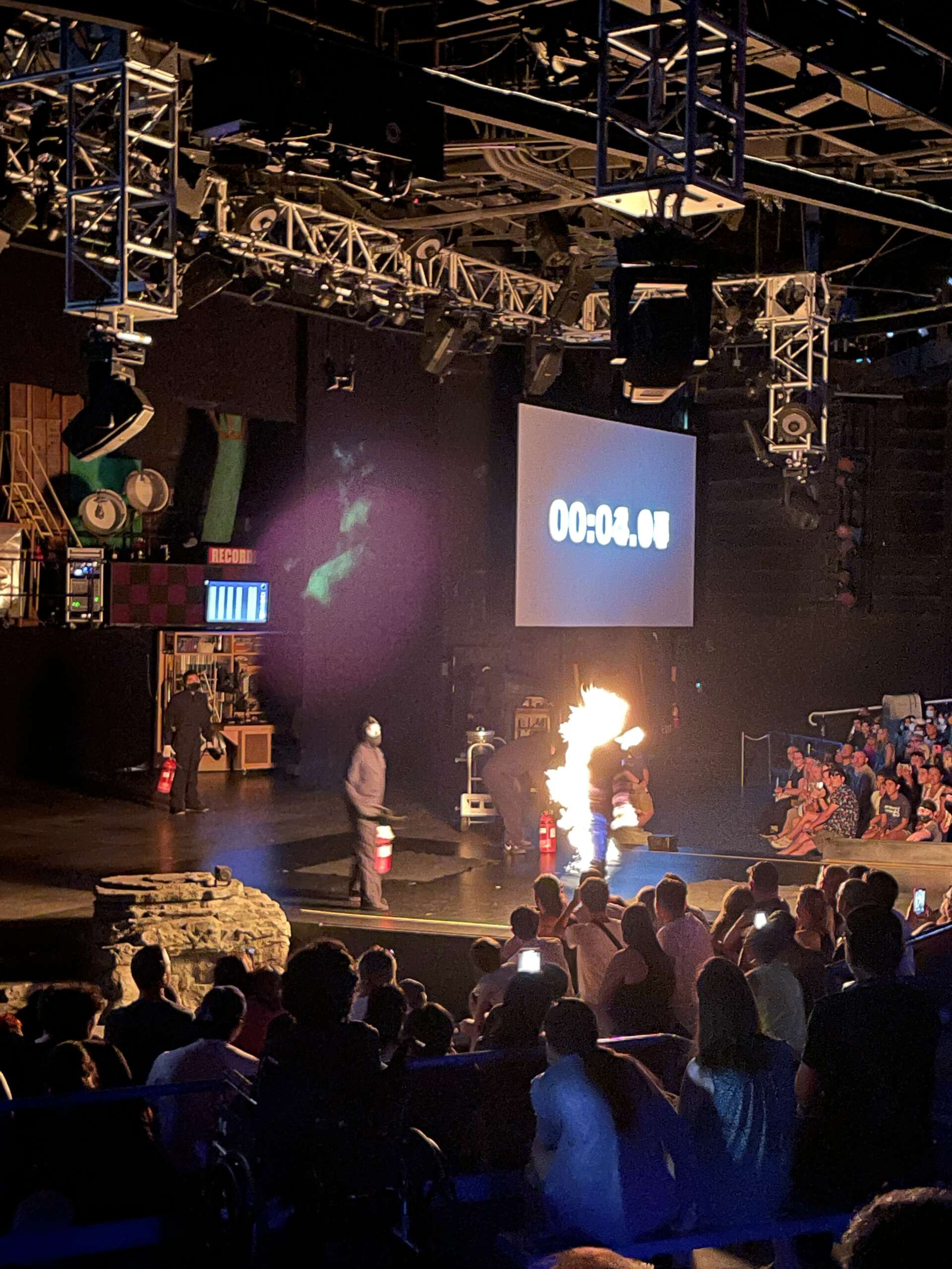 Comme pour la visite des studios, cela fait l’unanimité au sein de notre petite famille. On voit des cascades avec des gens qui simulent des combats, un cascadeur qui s’immole par le feu, les combinaisons avec capteurs qui permettent de retranscrire ne temps réel les mouvements de n’importe quel personnage virtuel, c’est instructif et spectaculaire. Un show à l’américaine de 7 à 77 ans !