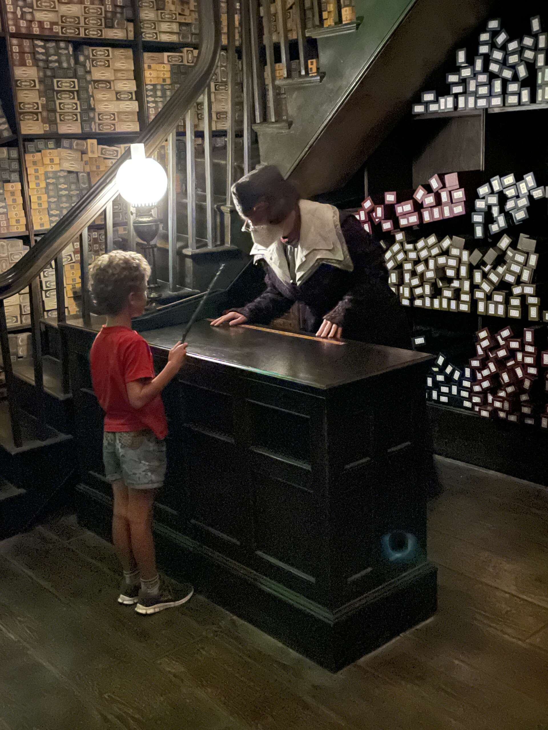 Petit aparté moins lyrique et n’y voyait aucune envie de gâcher ce moment car on a été très fier de la ténacité de Noah de vouloir absolument que ce soit Ollivander qui lui choisisse sa baguette et tout ça a rendu l’expérience au final beaucoup plus forte qu’une simple attraction.