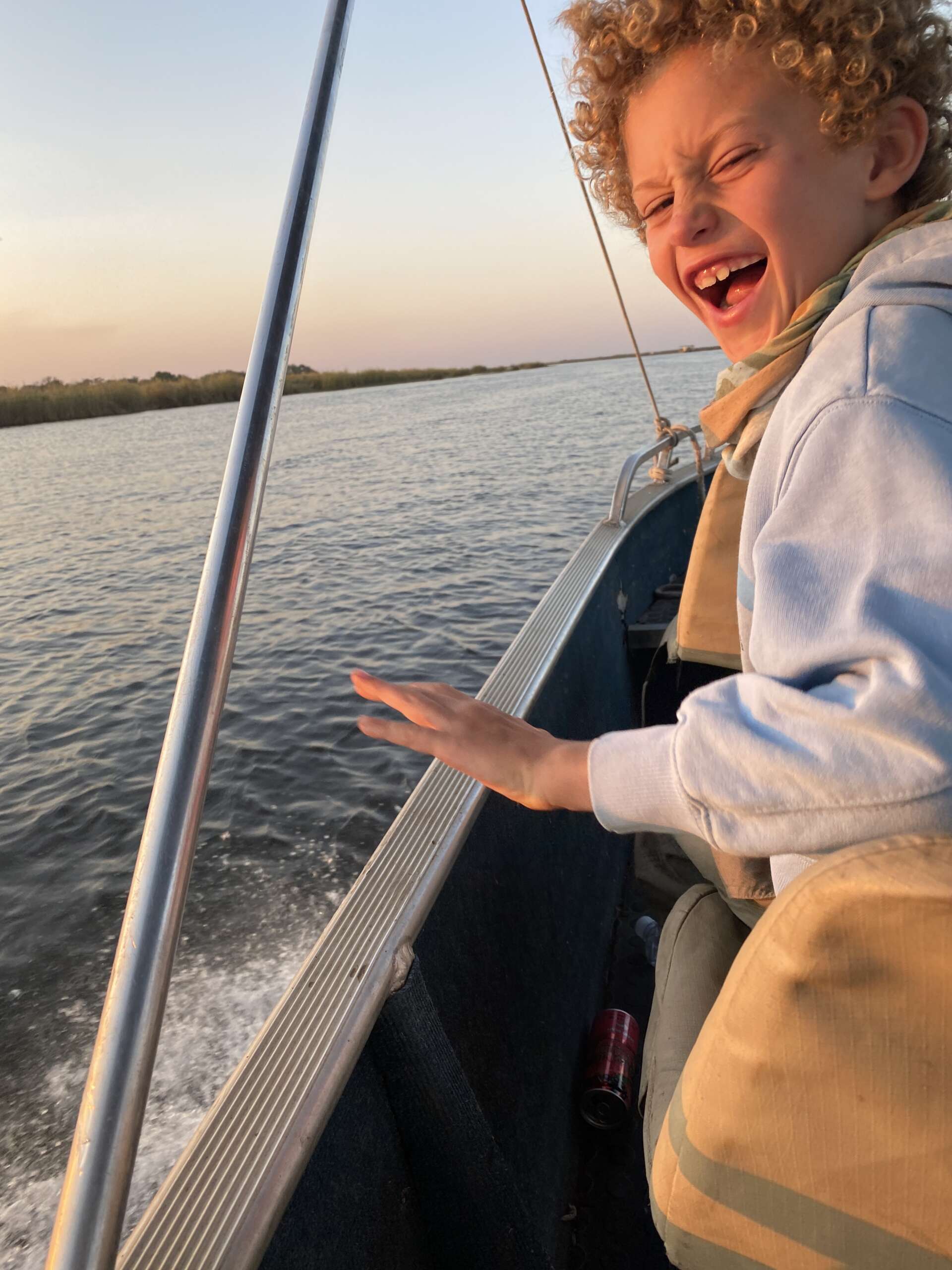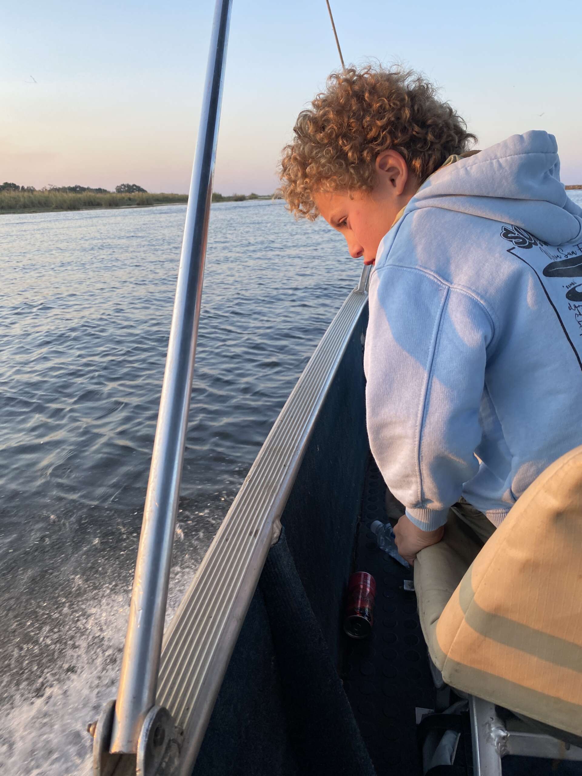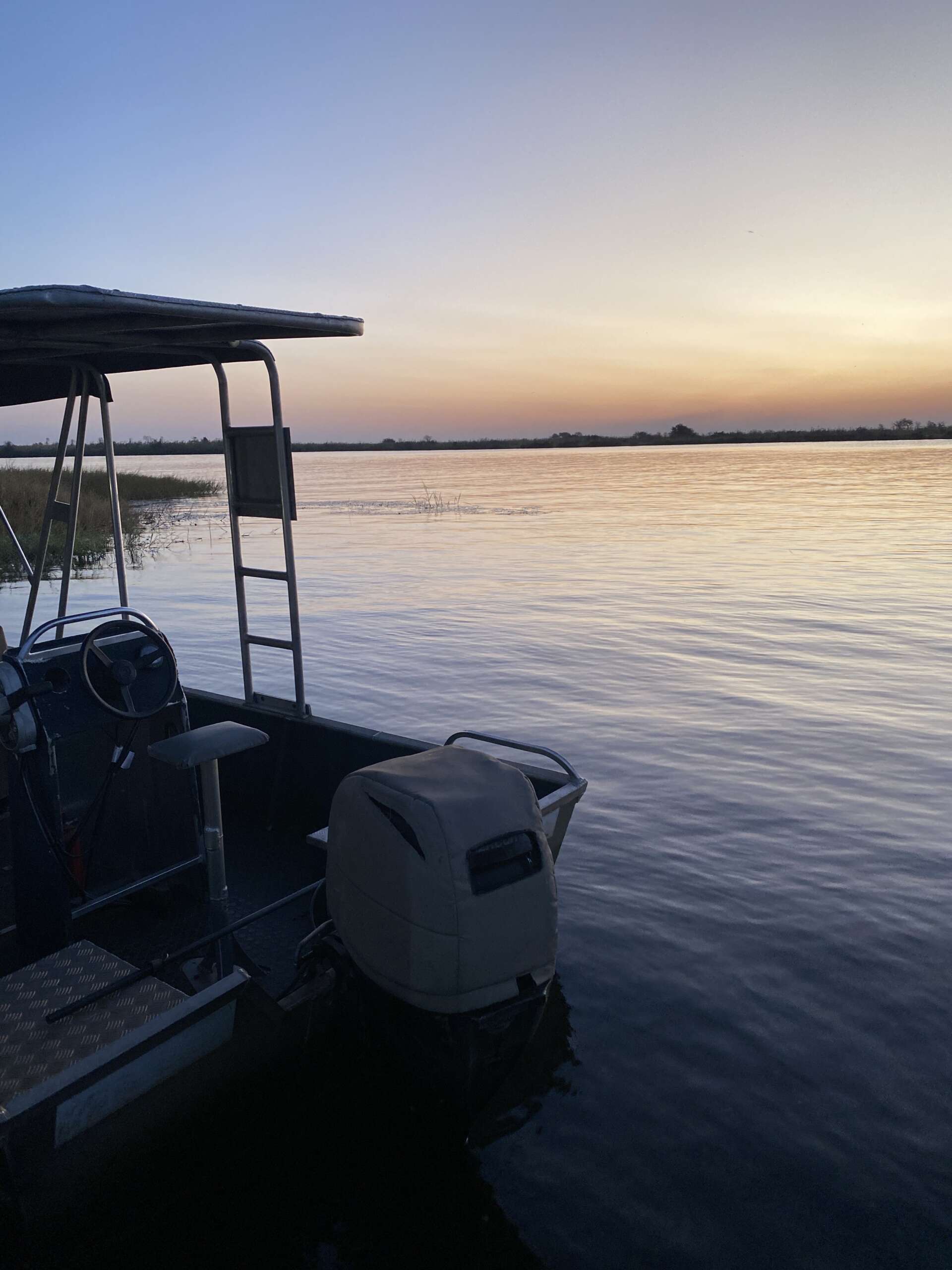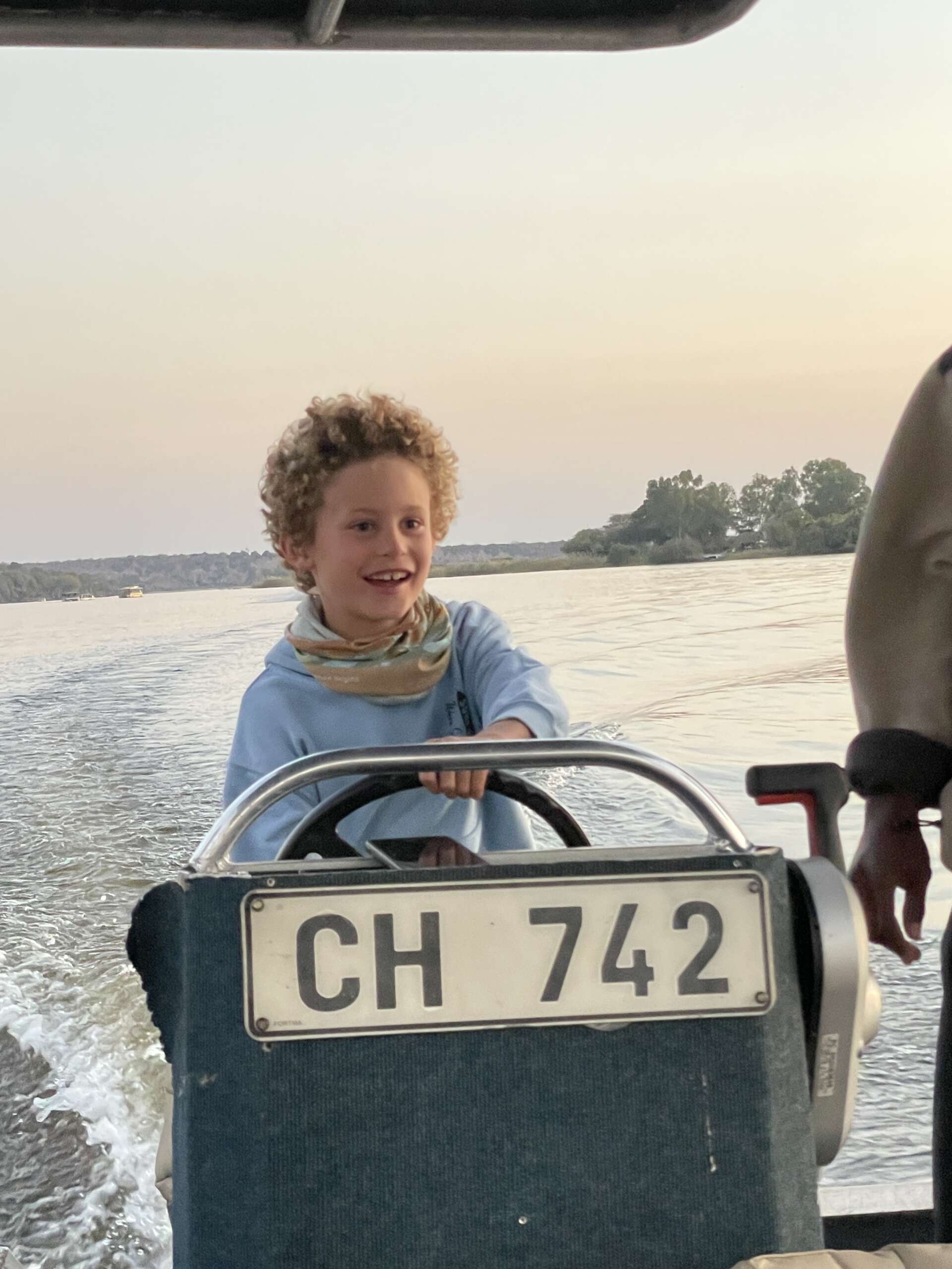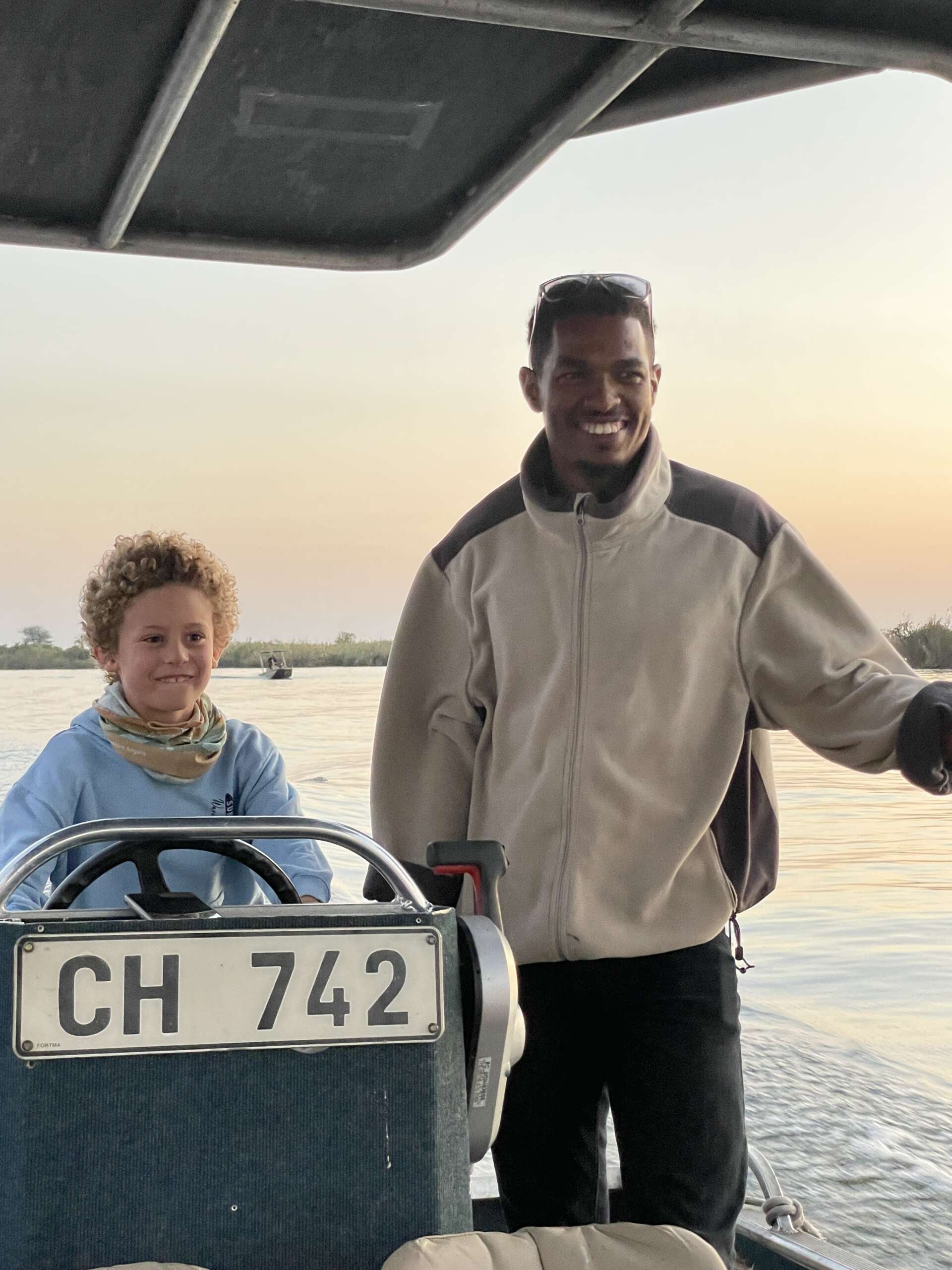 Qu’à cela ne tienne, on passe vite à autre chose et à 14h, nous voici en route pour notre croisière en bateau sur la rivière Chobe. Bateau de 8 places rien que pour nous. Quentin au volant.