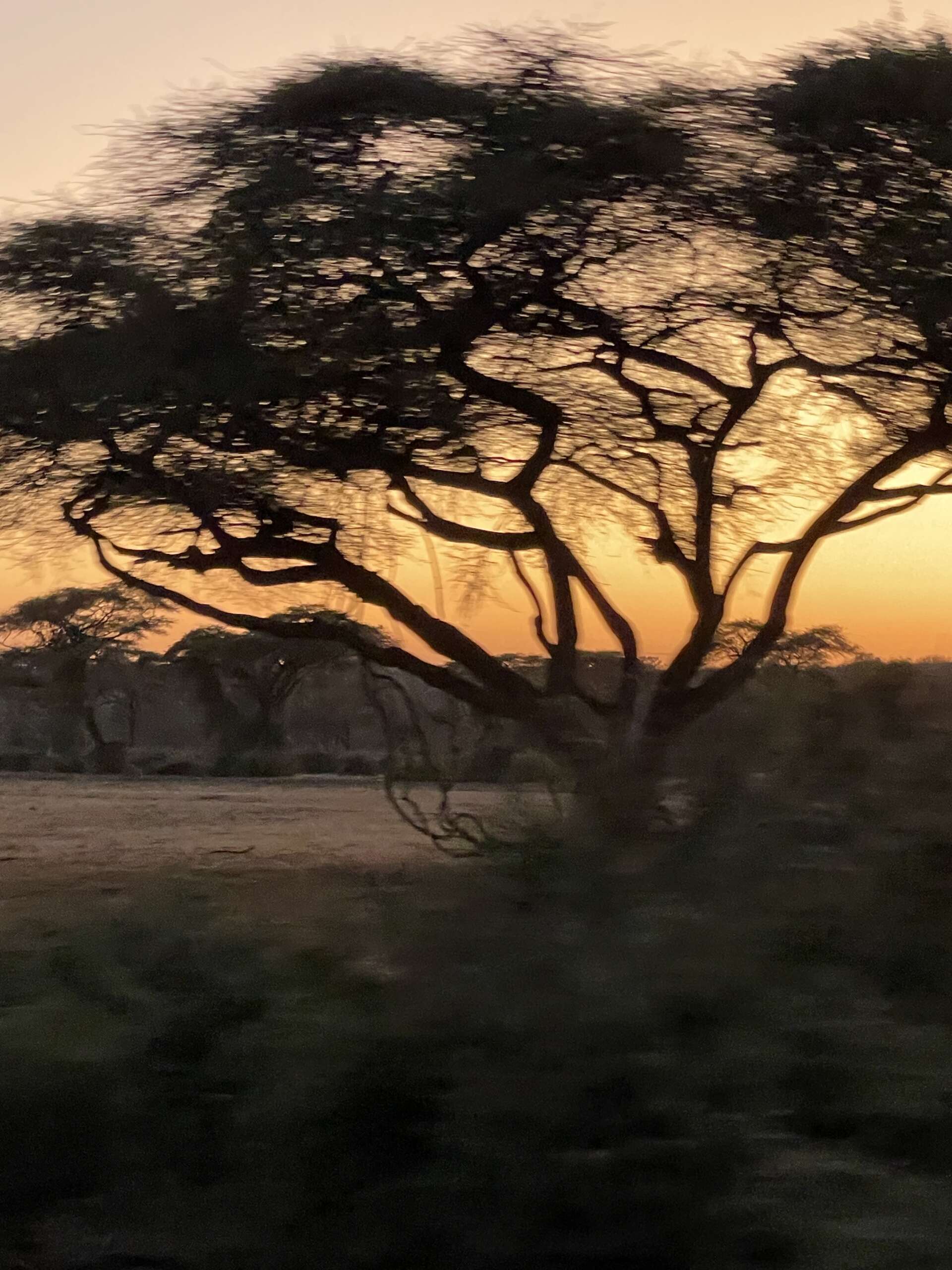 Après avoir croisé des dizaines d’animaux autour du lodge au moment du départ (il faut dire que vu les bruits de chacals, singes et éléphants toute la nuit, il n’y aurait eu pas âme qui vive dehors cela aurait été étonnant), on reprend la route de Chobe, mais cette fois celle-ci est différente et plus « smooth ». Quentin privilégiera celle-ci désormais. Vous trouvez les photos floues ? Ben c’est qu’on est flou à cette heure du matin.