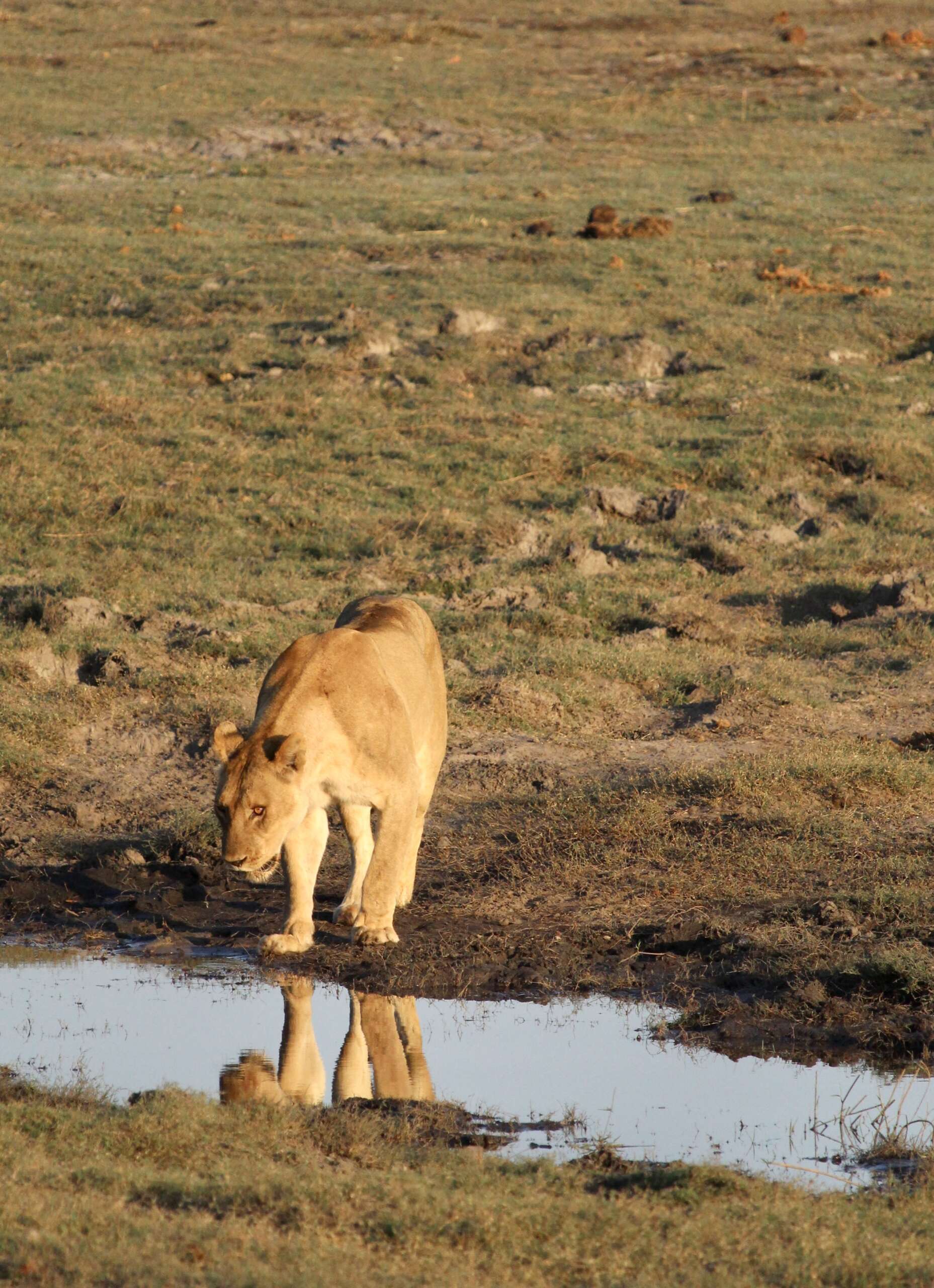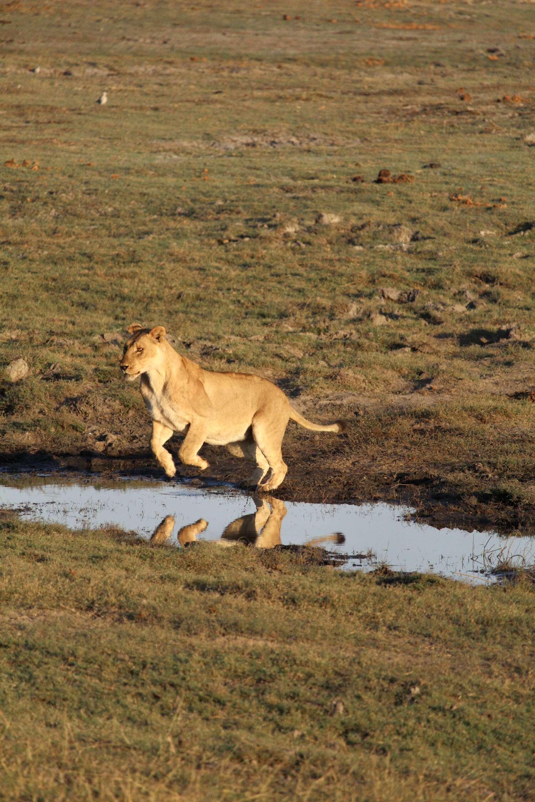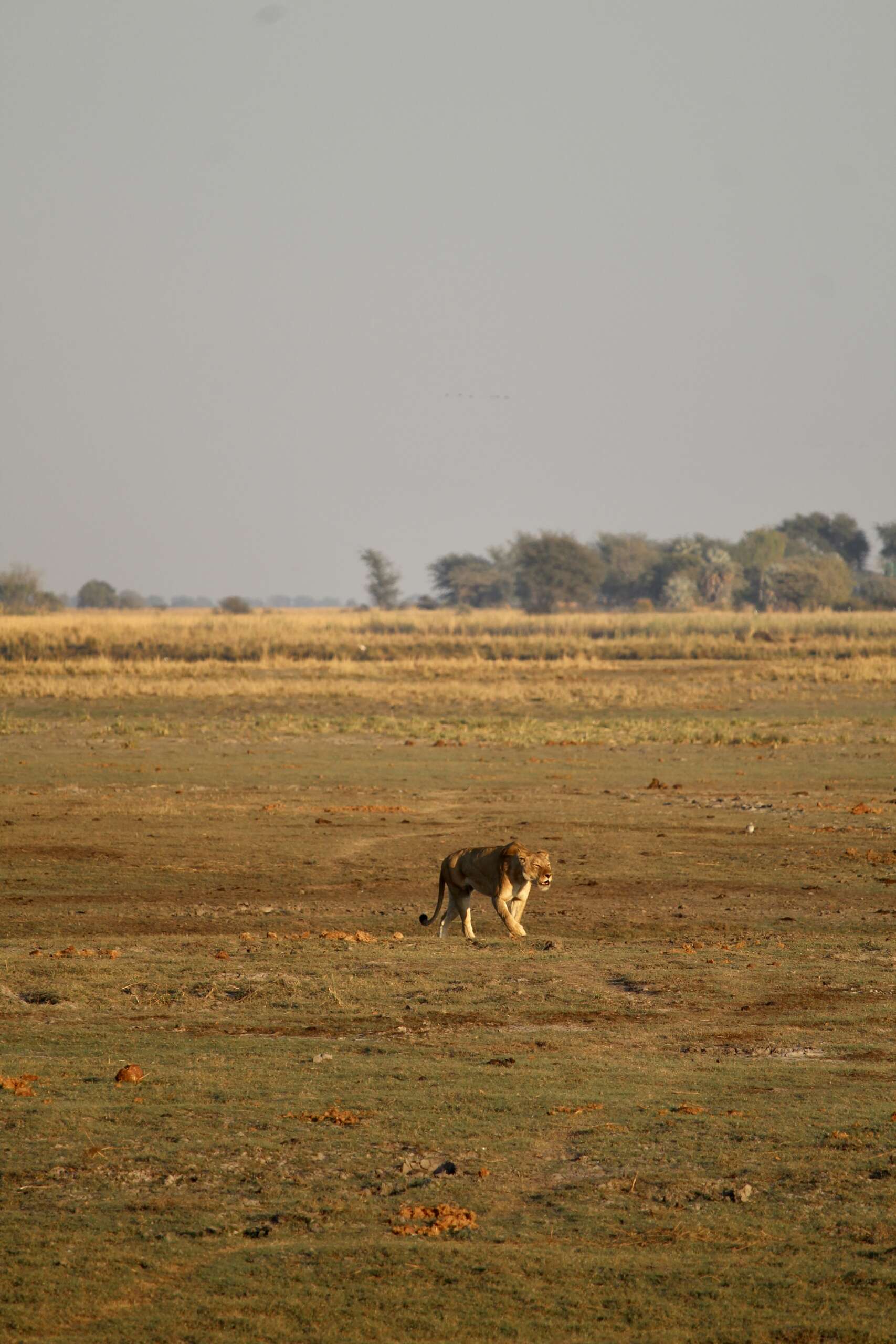 L’histoire semble se répéter par rapport à la veille. On passe devant le coin du léopard, qu’on ne voit pas cette fois, mais 5 minutes plus tard un lion marche sur la plaine. Là, inutile de dire qu’il n’y a pas foule chez les herbivores qui ont déserté les lieux à 2 km à la ronde. Le lion marche (ouah c’est mieux que l’option statue), puis déploie un effort surhumain pour sauter au-dessus d’un petit cours d’eau avant de poursuivre sa route et disparaître dans le bush. « Ladies and gentleman… The Lion ! ».