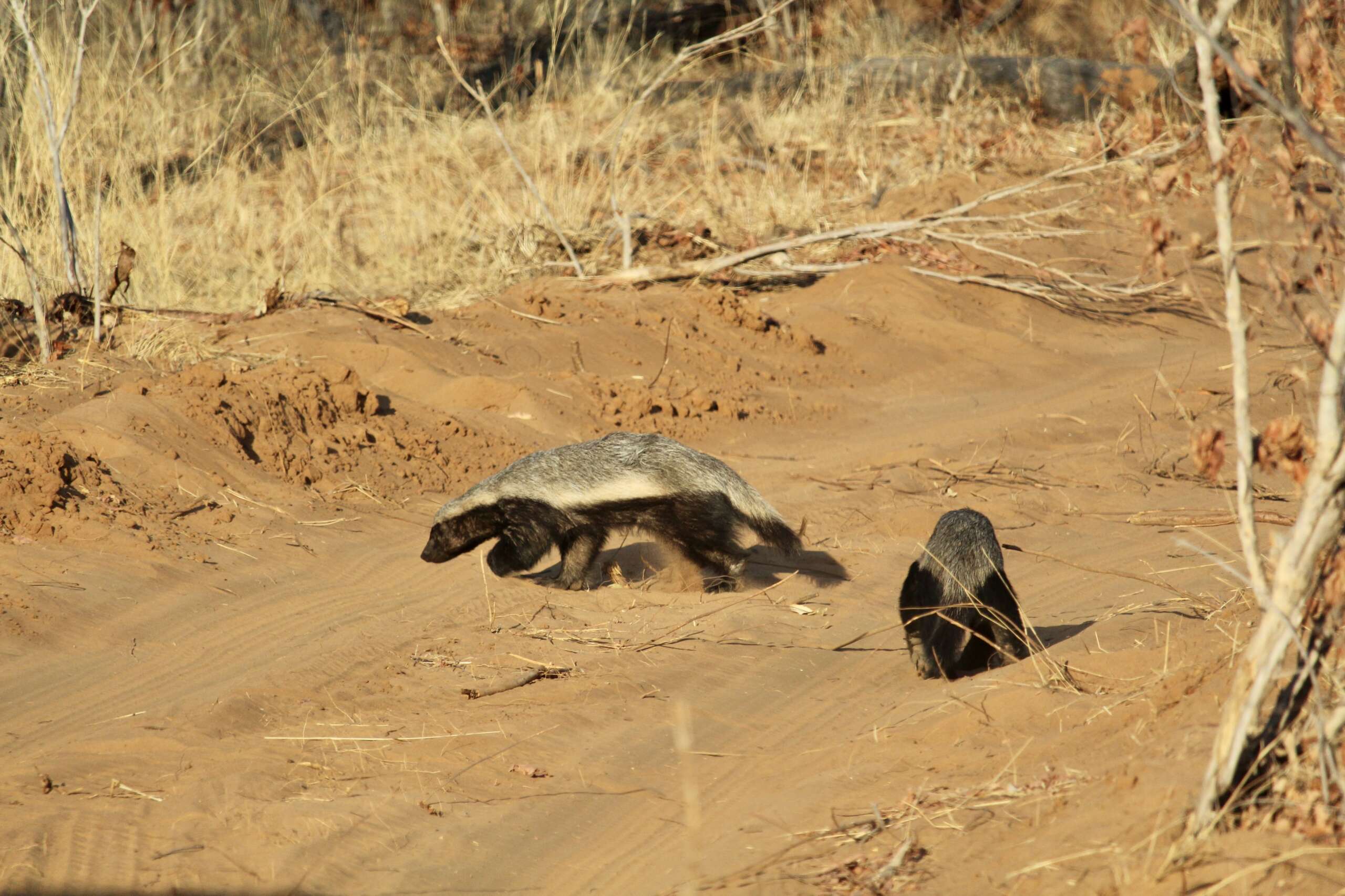 Il y a moins d’animaux le matin près de la rivière que hier après-midi. On s’enfonce donc dans le bush et on tombe sur un animal qu’on ne voit presque jamais, deux Honey Badger.