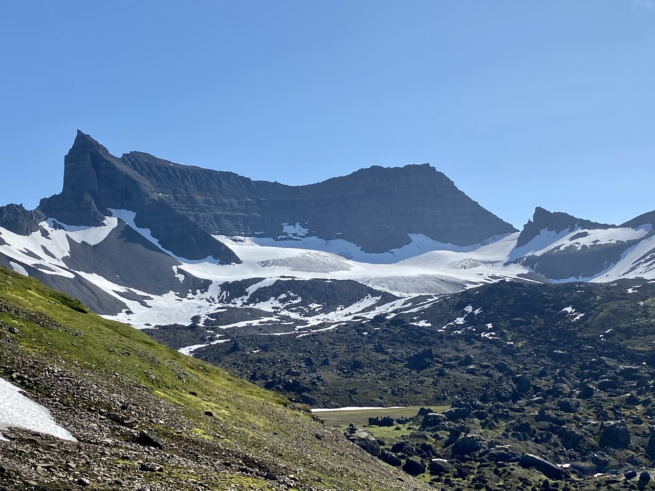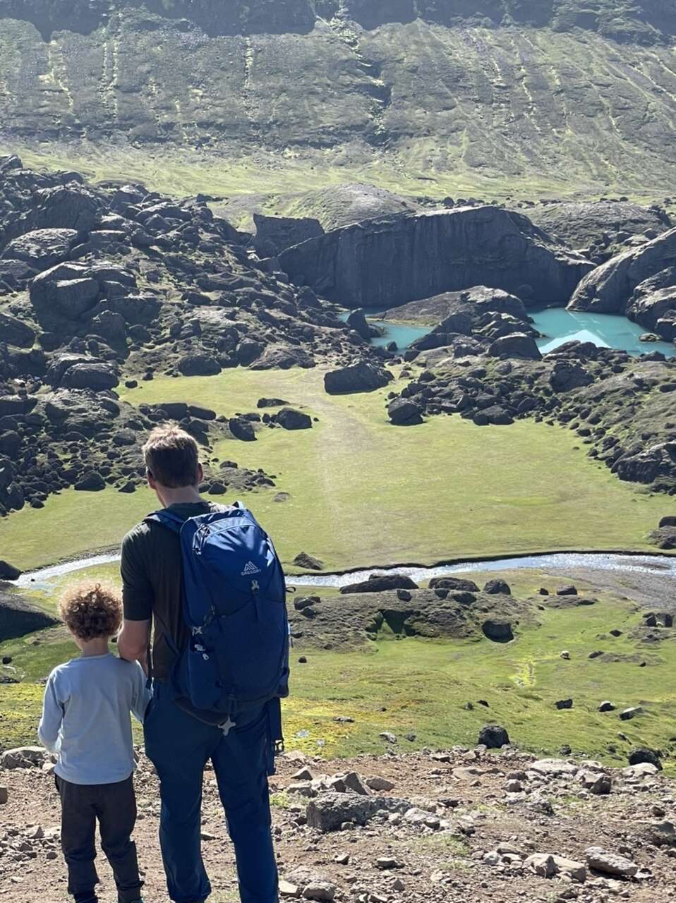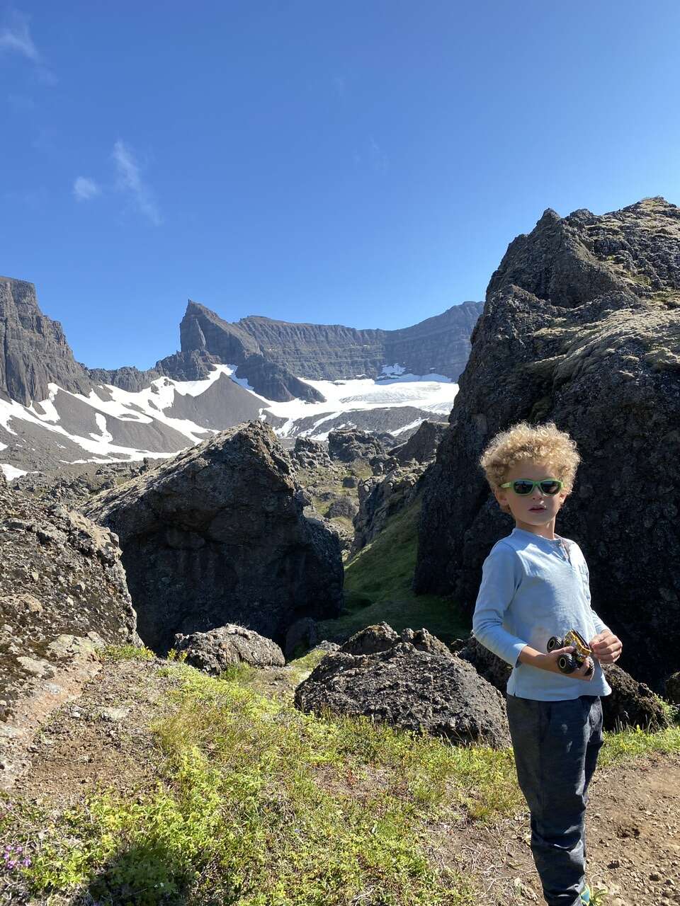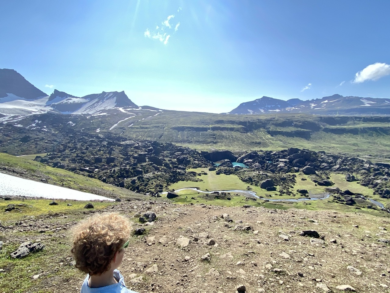 Après 2h de marche, on finit – enfin – par arriver au sommet et on peut apercevoir le Storurd d’ici pour la première fois en contre-bas. Mais qu’est-ce donc que le Storurd ? Je n’avais rien dit à Noah et Virginie pour leur faire la surprise mais je savais que ce serait canon.