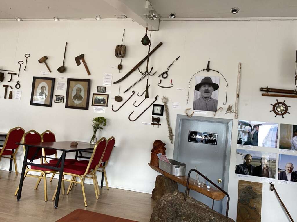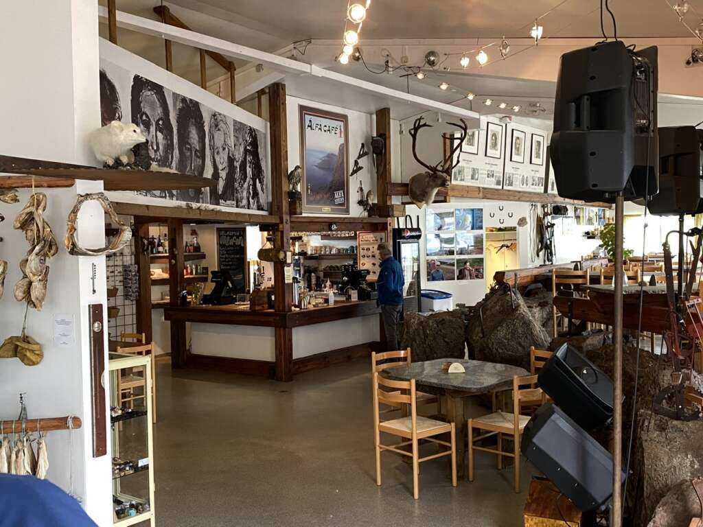 Mais heureusement, on enchaine sur un café totalement hétéroclite comme on aime, le AlfaCafé. De dehors tu penses au début qu’il est fermé (les Islandais n’ont pas la devanture très aguichante dès que tu quittes Reykjavik), mais à l’intérieur, il y a un décorum fait de poissons séchés, de « gueules » de pécheurs islandais dans de vieux cadres, d’outils de pêche. Un ensemble qui donne vraiment une atmosphère singulière.
