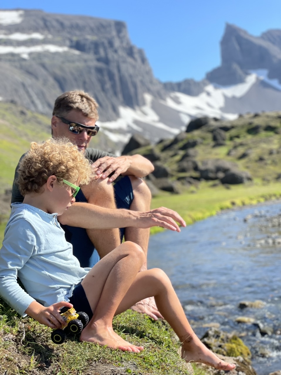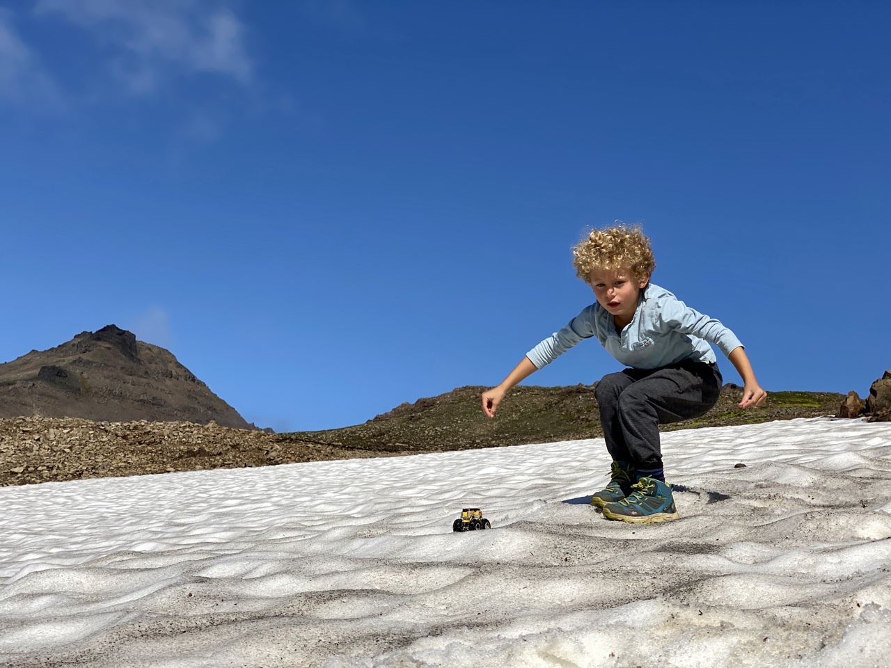 Voilà, il est presque 15h et entre les 4,5 km d’aller, les 2km pour faire la descente et le tour du Storurd, il faut maintenant tout se retaper dans l’autre sens. Là, comme à chaque fois qu’on est sur un aller et retour, même la perspective du 4×4 ne motive plus Noah et comme il avait écouté une histoire de vampire il y a 2 jours, me voici à lui raconter pendant les presque 2h du retour le début de la Saga Twilight. Je vous jure, qu’est-ce qu’il ne faut pas faire pour son enfant.