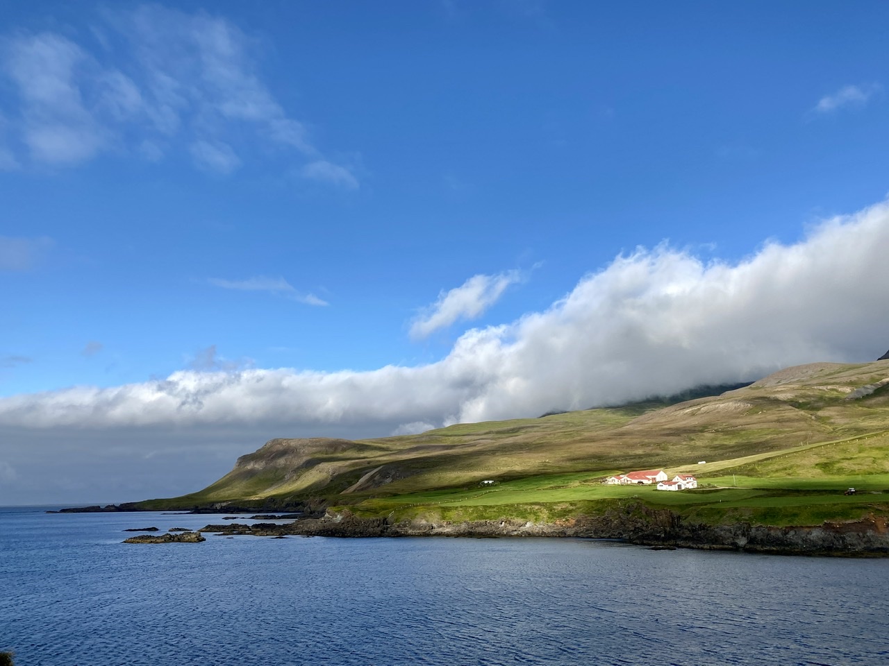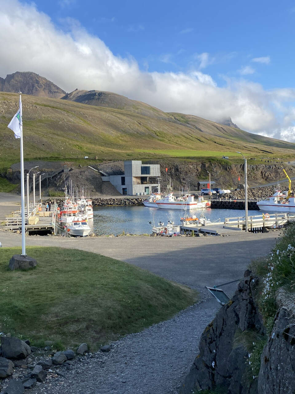 On se dirige ensuite vers la pointe du fjord à 6km en voiture pour une tentative d’observation de puffin à Borgrarfjordur. Si on n’aura pas l’occasion d’en voir de près on aura en revanche une vue magnifique sur tout le fjord et le petit port de pêche qui valait bien le détour.