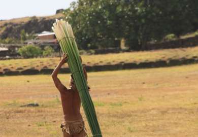 On retrouve même les reste d’un maoï femme, mais franchement il faut plus que de l’imagination. On y est supposé voir une poitrine et les mains qui sont le long du corps, au lieu d’être sur le ventre comme sur les hommes (pour symboliser qu’ils ont bien mangé ?), ont les mains posées plus bas comme pour soutenir le ventre de la grossesse. Mouais…