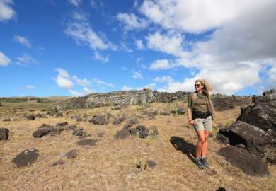 Comme virginie voulait finir sa journée par un massage, on part plus tôt l’après-midi pour le sommet de l’ile afin d’en avoir une vue panoramique. On finit en somme par ce par quoi on aurait pu commencer, mais on trouve qu’après avoir visité tous les recoins de l’ile de pâques, c’est une bonne façon de terminer notre séjour. Marche de 3h à 4h qu’on va avaler en 2h30. Record de l’hôtel parait-il. De bonne augure avant d’attaquer la Bolivie ? Pas sûr, mon genou me fait toujours mal. En tout cas, on a pu observer la désolation de l’ile, et en même temps sa beauté.