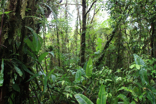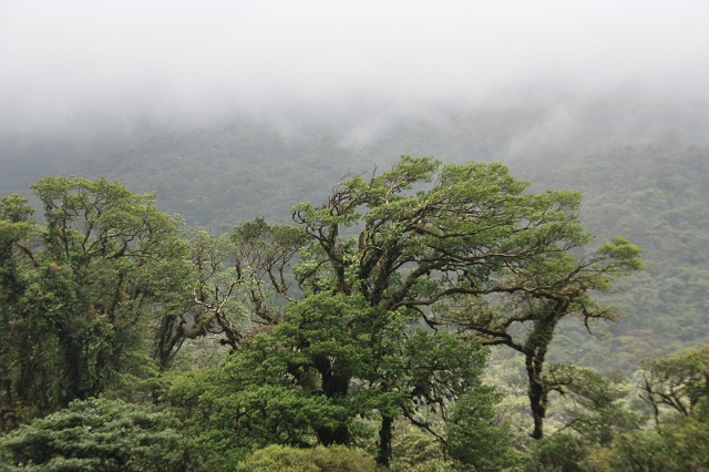 Et en parlant de bonnes surprises, pendant 5 minutes le vent à dispersé les nuages nous permettant d’apercevoir fugacement le sommet du Tenorio. Rien d’extraordinaire entre nous, étant éteint depuis très longtemps, on dirait surtout une grande colline (à 2 000 mètres d’altitude quand même), donc on vous met pas la photo du Tenorio, mais des environs, qui est plus jolie..