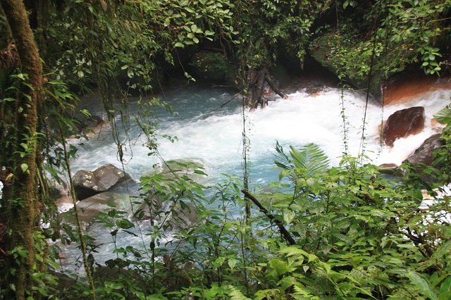 Heureusement en revanche qu’il n’a pas plu durant la nuit, parce que la fameuse couleur bleue du Rio Celeste et de la Laguna Azul ne provient pas de la couleur bleue du ciel qui se réfléchit sur l’eau mais des minéraux qu’elle contient, notamment du calcium et du souffre. Donc tant que l’eau n’est pas brouillée par des pluies nocturnes qui charrient des impuretés, le spectacle devrait être préservé.