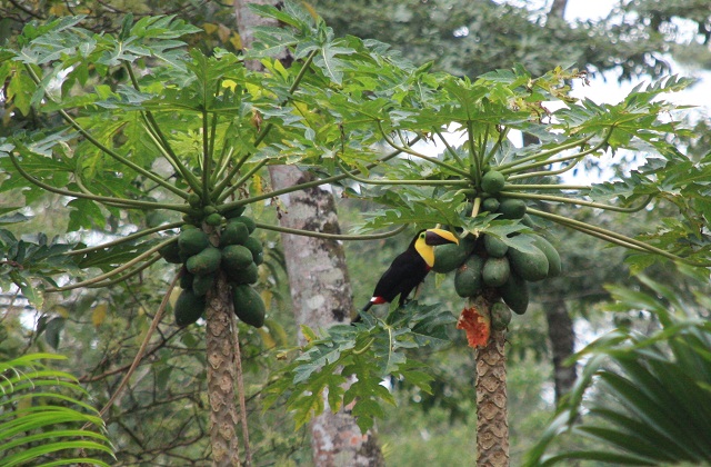 Sur la route du retour de l’hôtel après 3h de marche, on s’arrête au petit village de BIjagua, derrière le terrain de foot pour chercher les petites grenouilles vertes, emblème du Costa Rica, les « red eye tree frog ». On n’en trouvera pas malheureusement, mais en revanche, on tombera sur le nid de 2 bébés vautours avec leur duvet dans la crevasse d’un tronc d’arbre au niveau du sol qui attendaient leurs parents. Et oui, la nature ce n’est pas un zoo. On ne trouve pas toujours ce qu’on cherche, mais on n’est jamais à l’abris de bonnes surprises.