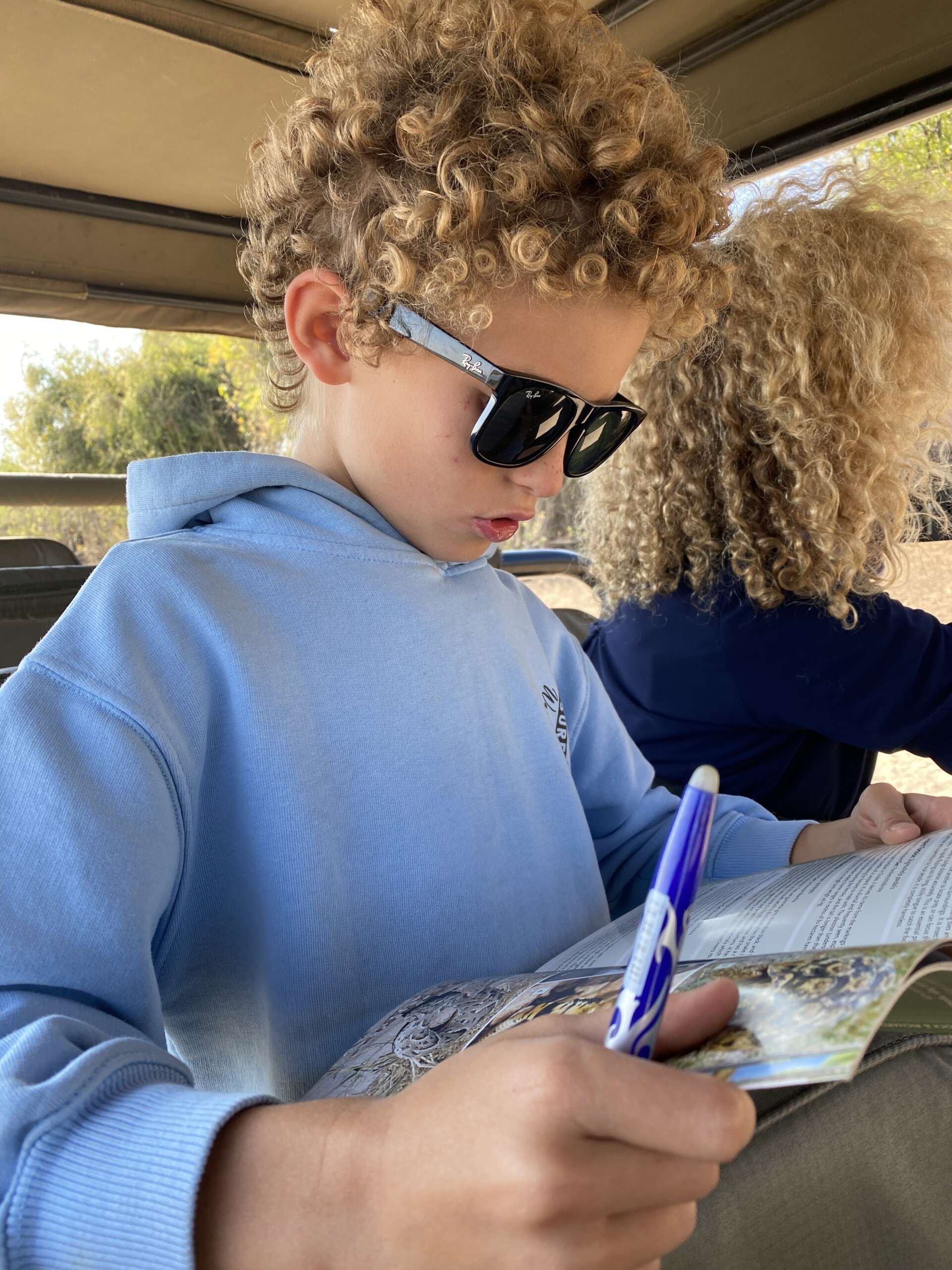 Ce petit interlude passé, nous reprenons notre route vers la rivière pour observer des troupeaux d’impala notamment, car Virginie a envie de voir des troupeaux depuis deux jours. Noah pendant ce temps, coche, impassiblement tous les animaux qu’il a vu depuis le début du séjour dans le guide qu’il a récupéré au lodge.