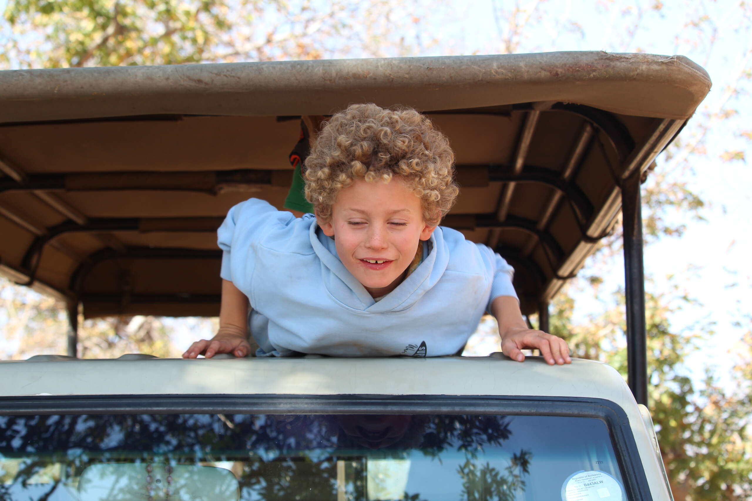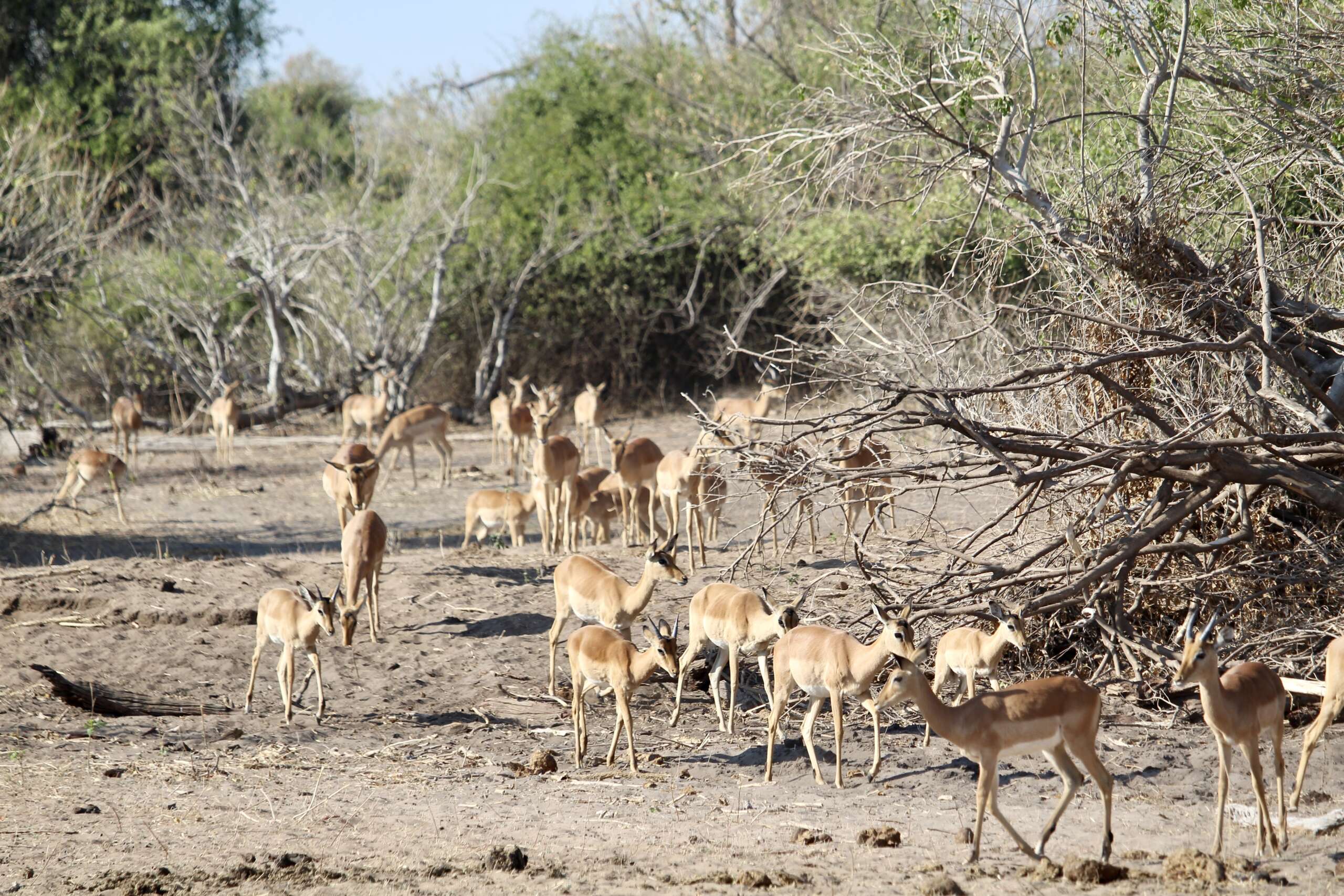 Ce matin, interrogation écrite. Sujet ? Mathématiques. Comment diviser par deux les allers et retour de 45 minutes chacun entre la réserve de Chobe et notre lodge ? Elémentaire mon cher Watson, il suffit d’y passer toute la journée. On se lève donc un poil plus tard que d’habitude (6h30 au lieu de 5h30) sauf qu’on reviendra à « la nuit tombée » pour citer Noah qui emploie toujours les mots justes.