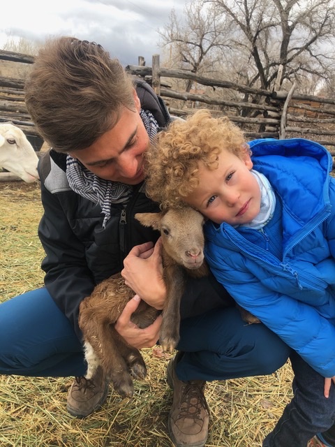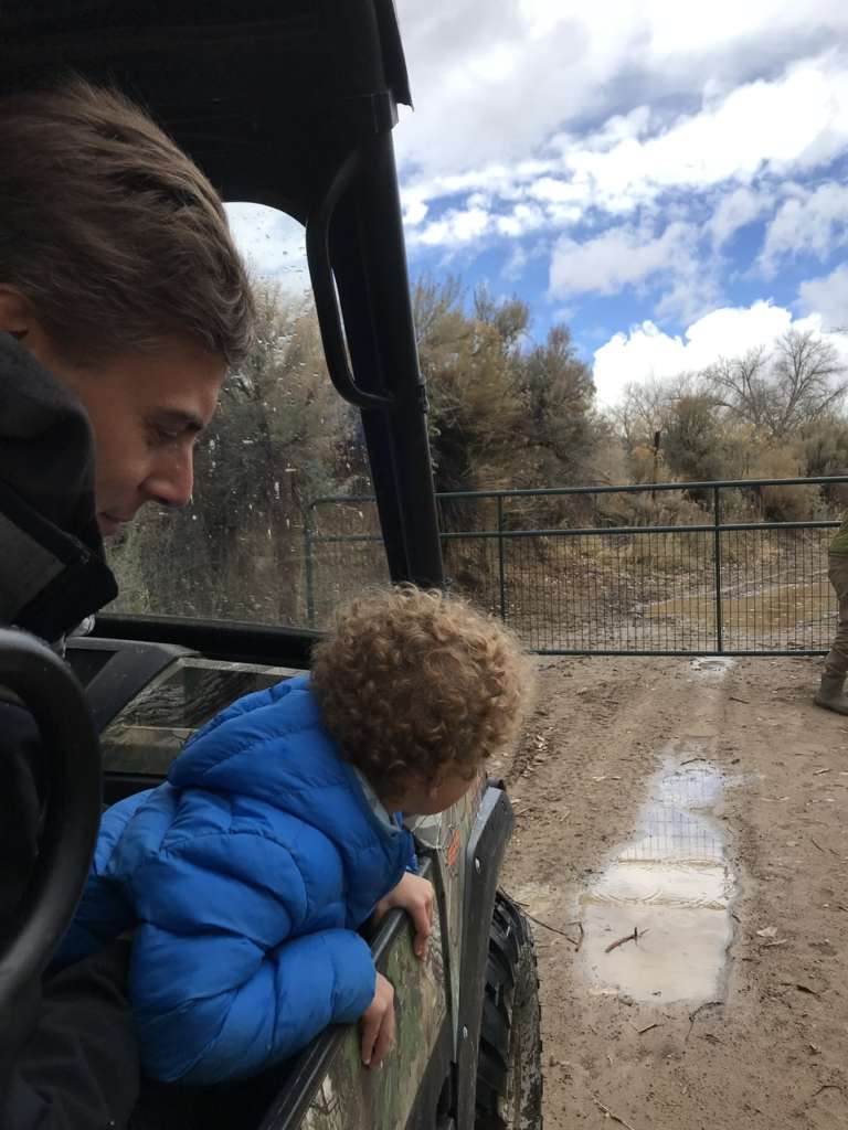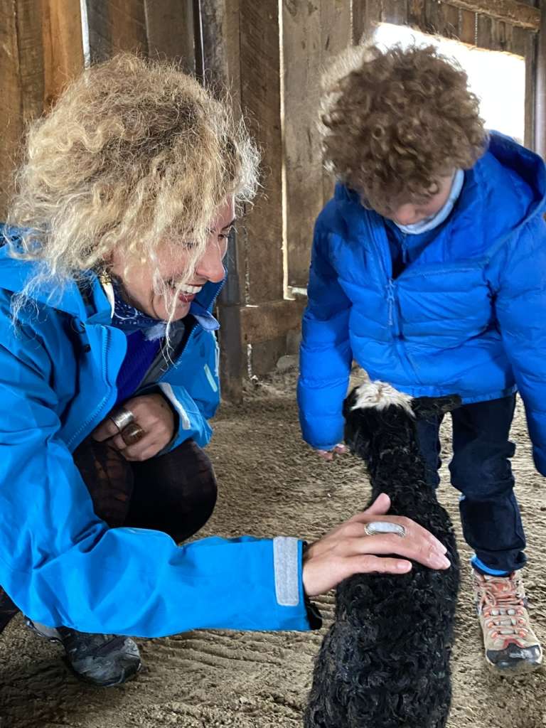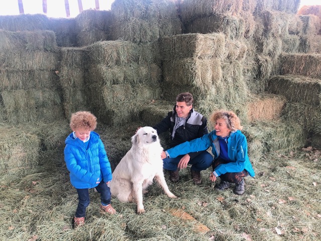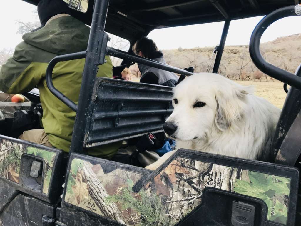 La pluie s’est arrêtée, on part en voiturette (ou comme l’appelle Noah en Pétrolette) en compagnie des 2 chiens (Bessie et Dolores) voir les petits agneaux qui sont nés hier. Grosse séance de calinothérapie en perspective. Dolores est un chien des Pyrénées qui ressemble beaucoup à Snow en moins massif.