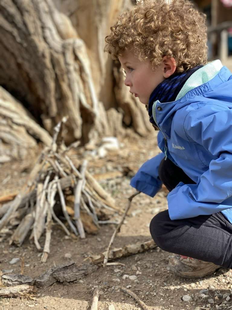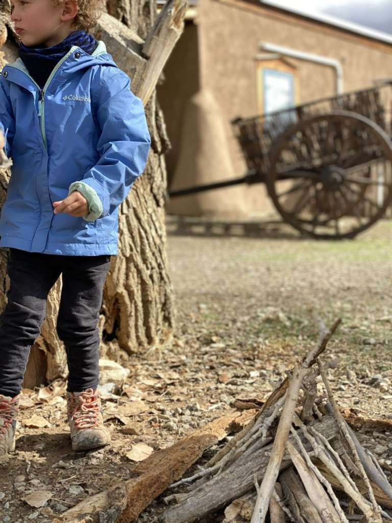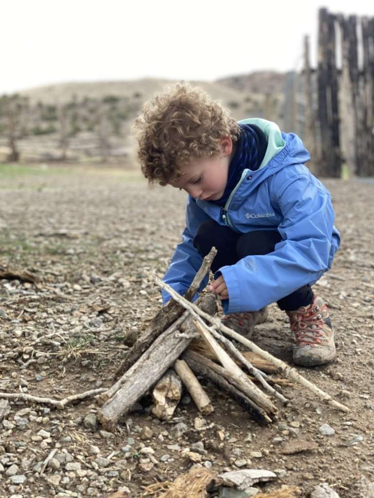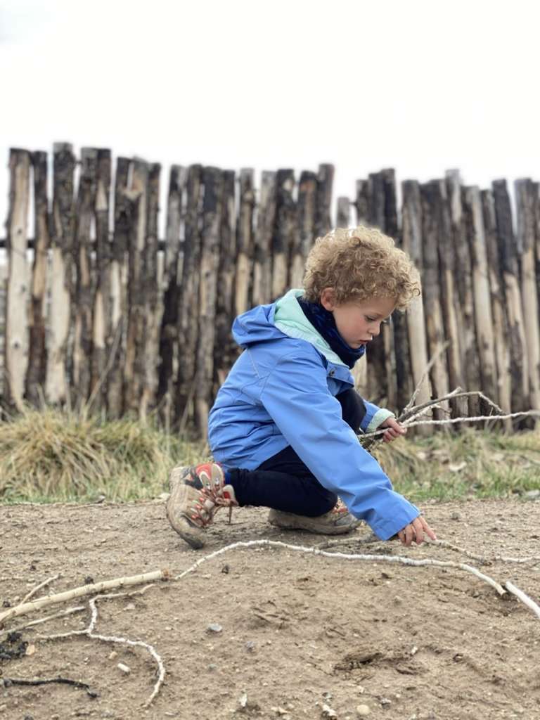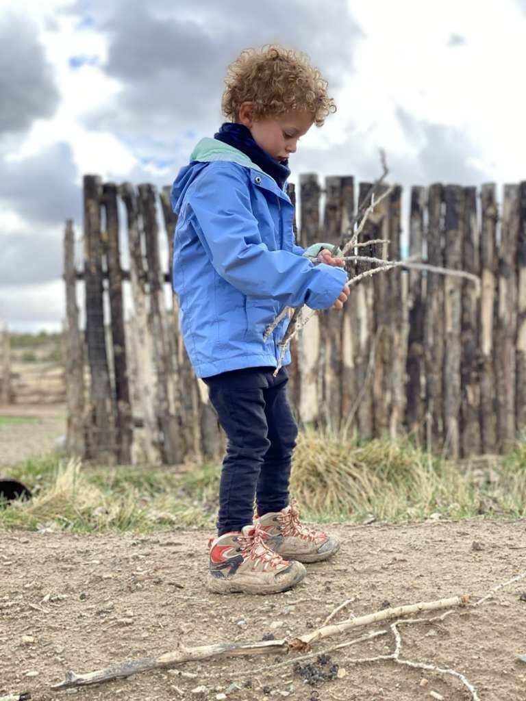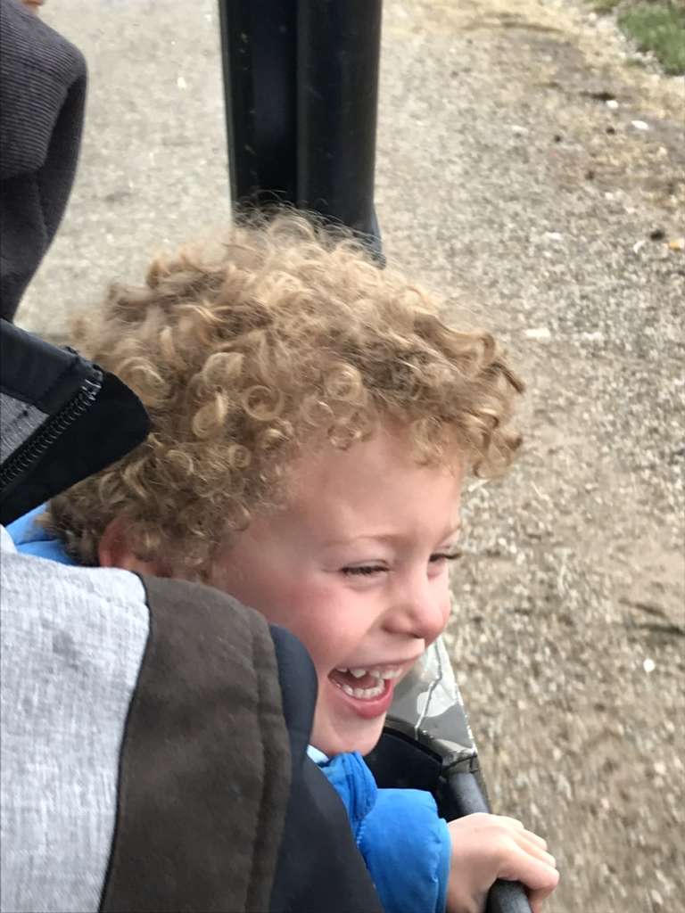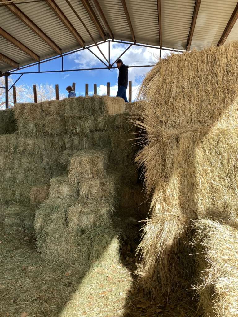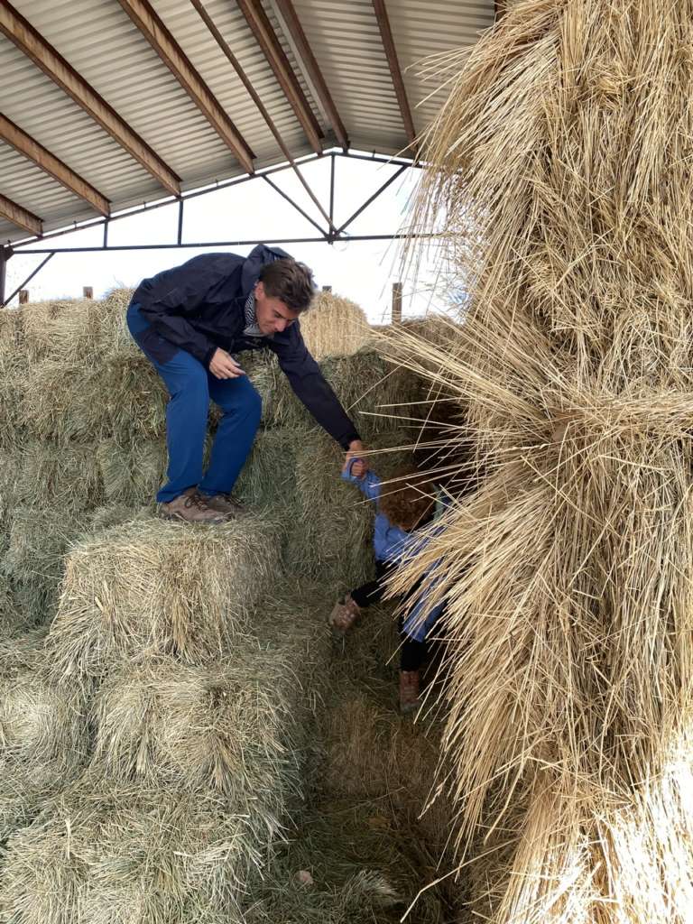 Puis Noah repère des bottes de foins en face de l’enclos des agneaux et ne résiste pas à l’envie de monter tout en haut et jouer dedans.