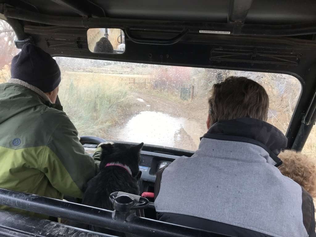 On redescend ensuite vers les près. Au ranch il y a 2 catégories de moutons, les «Incredibles » (Les Indestructibles en référence au dessin animé) que Garry a recueilli à la naissance et élevé comme des animaux de compagnie dans sa maison, et les autres moutons qui ont vocation à finir pour la plupart dans ton assiette. Les Incredibles ont tous un nom et une histoire. Voici Liberty, Sacha, Quasimodo, Natacha (beaucoup de noms russes ? Pourquoi ? Parce que Garry trouve qu’ils ressemblent à des russes).