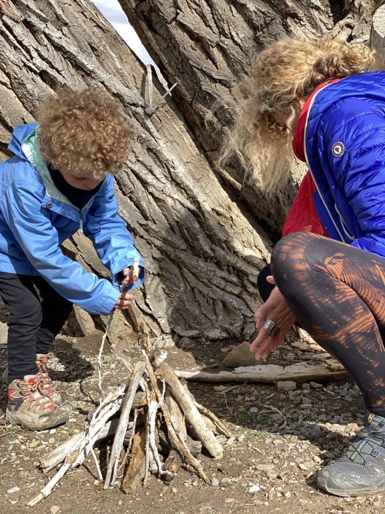 Noah enchaîne avec Virginie sur la création d’une œuvre d’art digne de figurer à la FIAC. Ils partent de la construction d’un feu de camp, puis à partir de brindilles se mettent à décrire des arabesques sur une quinzaine de mètres carrés.