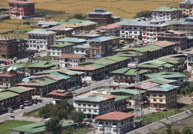La veille, on voulait dîner dans la ville et Nima nous emmène dans un appartement / hôtel (comprendre studios loués pour des périodes longues dans une structure hôtelière). En attendant l’ascenseur, on fait la connaissance de Jane, prof californienne qui revient au Bhoutan pour la troisième fois et qui s’apprête à y rester 3 mois. Objectif de son voyage : comprendre et conserver une trace du patrimoine musical du Bhoutan. Un excès de politesse des 2 côtés nous fera rater l’ascenseur une nouvelle fois, prolongeant la discussion et nous voilà invités le lendemain dans son appartement pour un concert très privé (juste nous deux) donné par un des grands musiciens du Bhoutan avec lequel elle travaille.