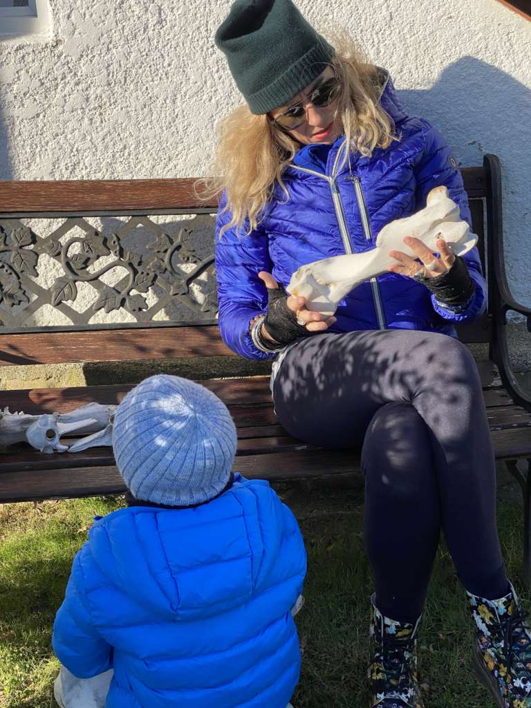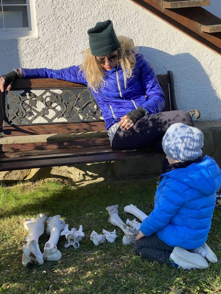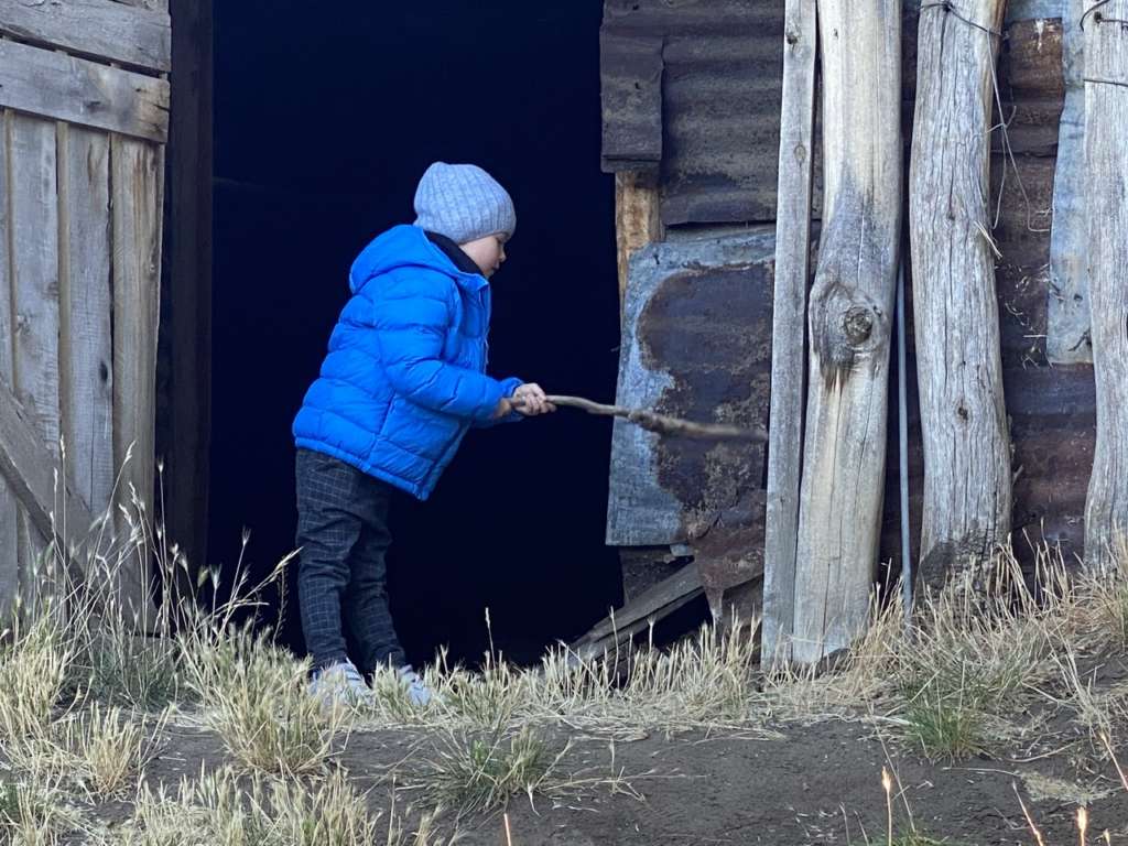 Noah, lui, se met déjà à explorer les alentours. Ici une ancienne cabane abandonnée, puis tout de suite, il réunit son premier trésor, des os et cranes probablement de guanacos et de moutons.