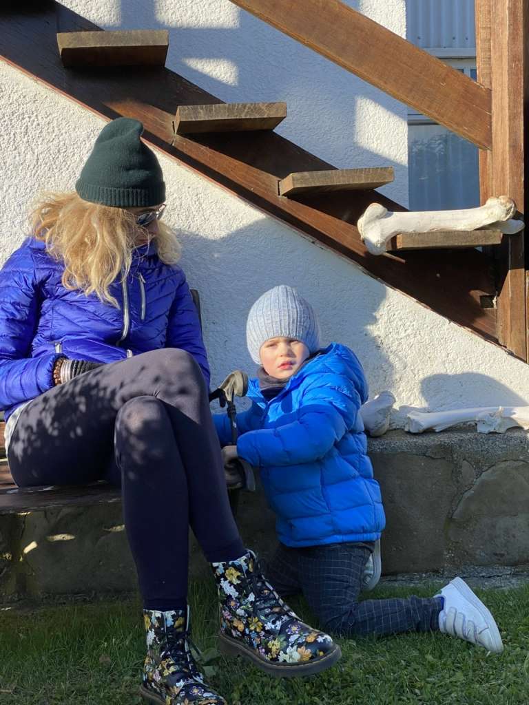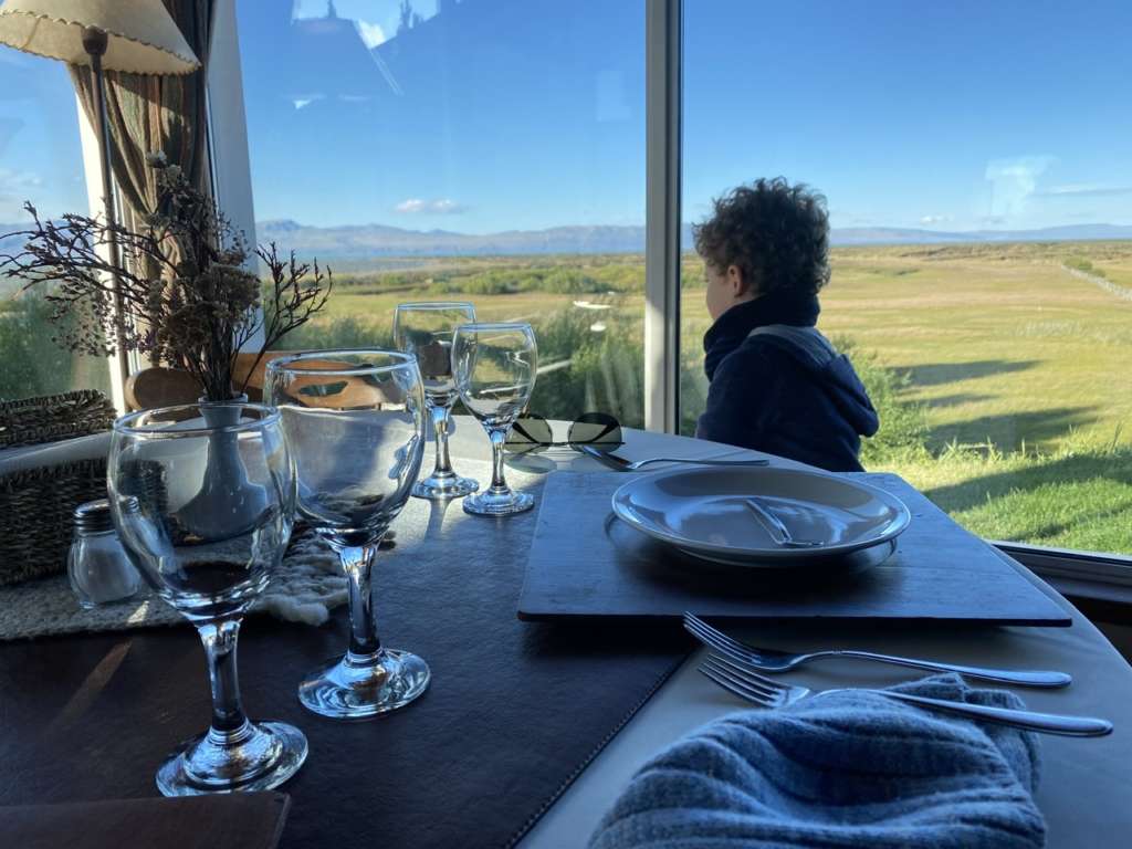 Entre le décallage horaire et le fait qu’ici le soleil se couche vers 23h30, Noah pense qu’on est au beau milieu de la journée. Déjà qu’il considère globalement que manger et dormir est une perte de temps, quand il s’agit de le sortir de son trésor pour aller dîner, il rechigne. Du coup, même si on se régale de produits locaux en dînant devant le lac, notre dîner est ponctué de nombreux “Noah assis”, “Noah vient manger”, “Bon, tu prends une dernière cuillère et après tu peux sortir de table”.