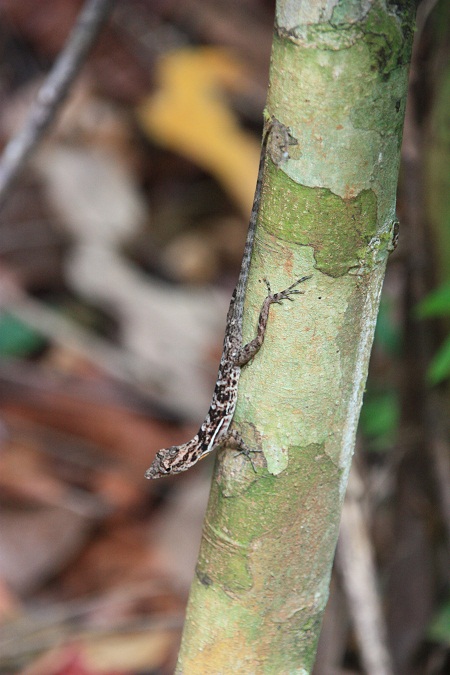 Virginie s’est prise d’une nouvelle passion, les lézards. Autant sans ses lunettes elle ne voit pas grand-chose, autant après 15 jours à crapahuter ici et en Equateur dans ces forêts, elle voit tout ce qui bouge. Un vrai radar à bestioles !