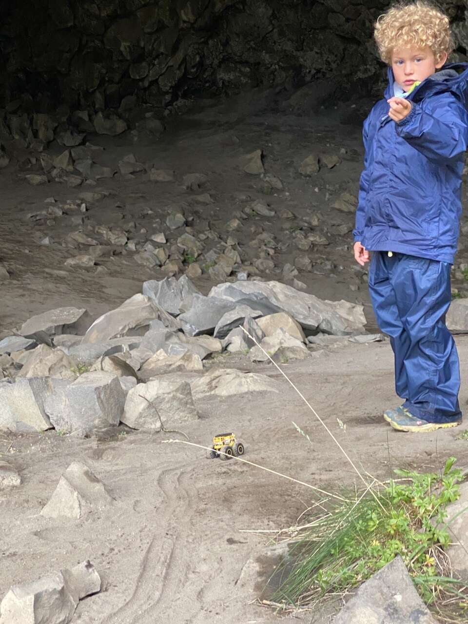 On fait donc nos adieux tranquilou bilou à nos Italiens et on prend la route. On ne se cogne pas l’heure de détour pour retourner aux sculptures de Arctic Hendge vu le temps, mais on promet à Noah une petite surprise en compensation.