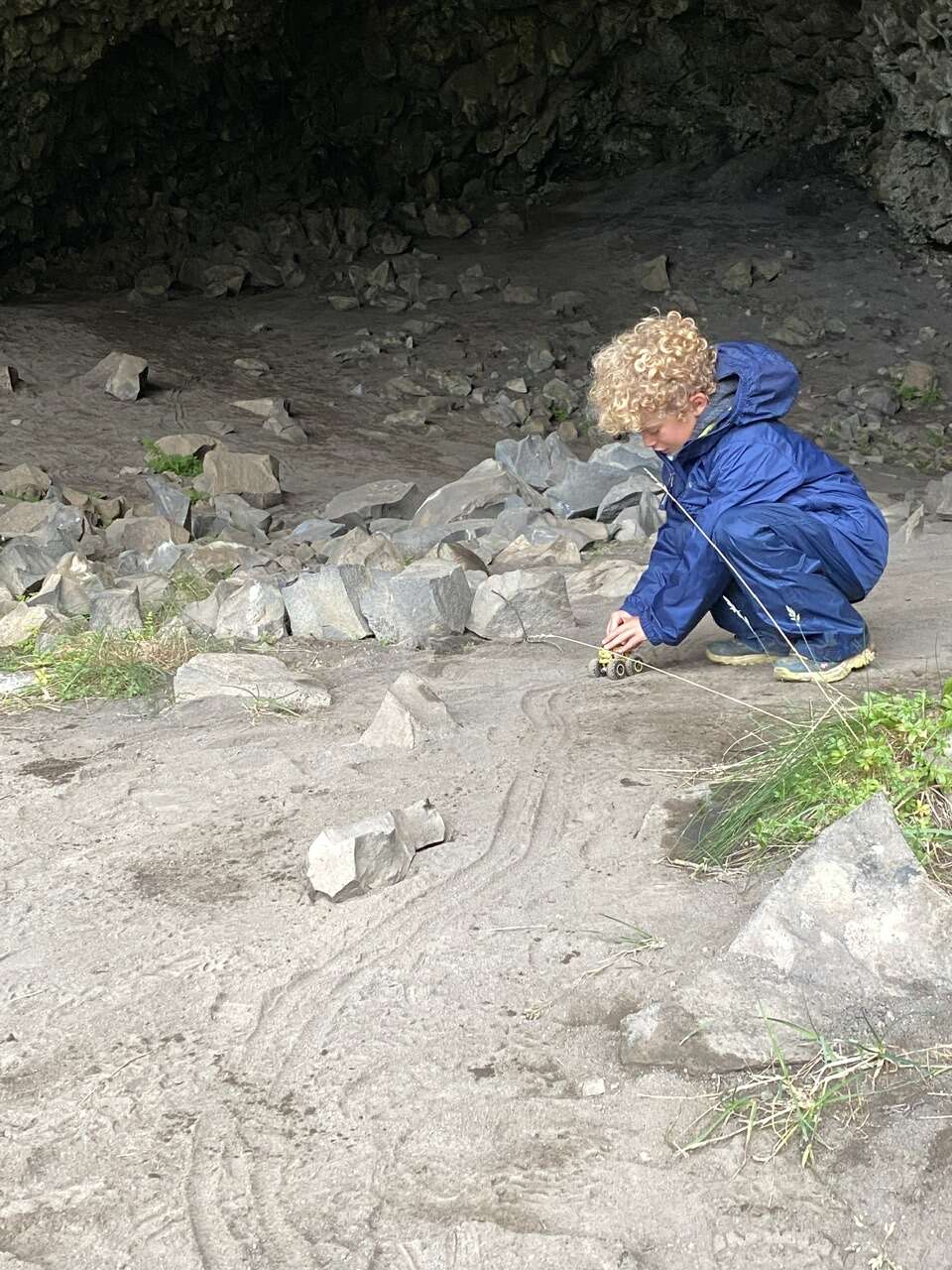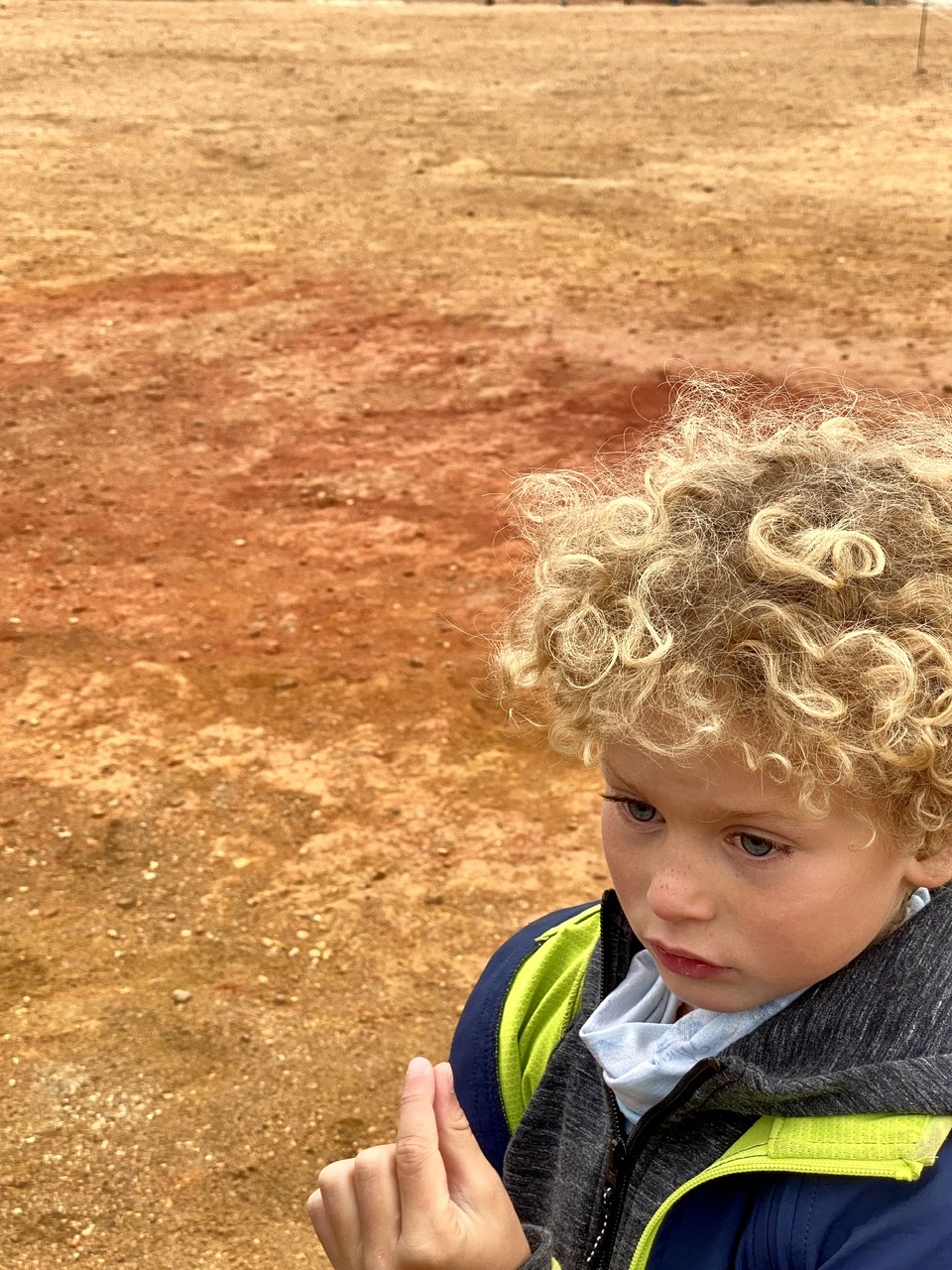 Noah, lui, y voit une piste de quad qui n’attendait que lui, et se met à tracer un circuit dans le sable et la roche pendant une quinzaine de minutes pendant qu’abrités, on voit la pluie s’intensifier autour de nous.