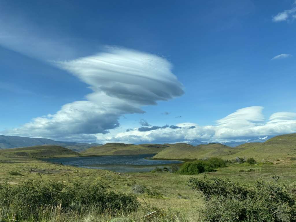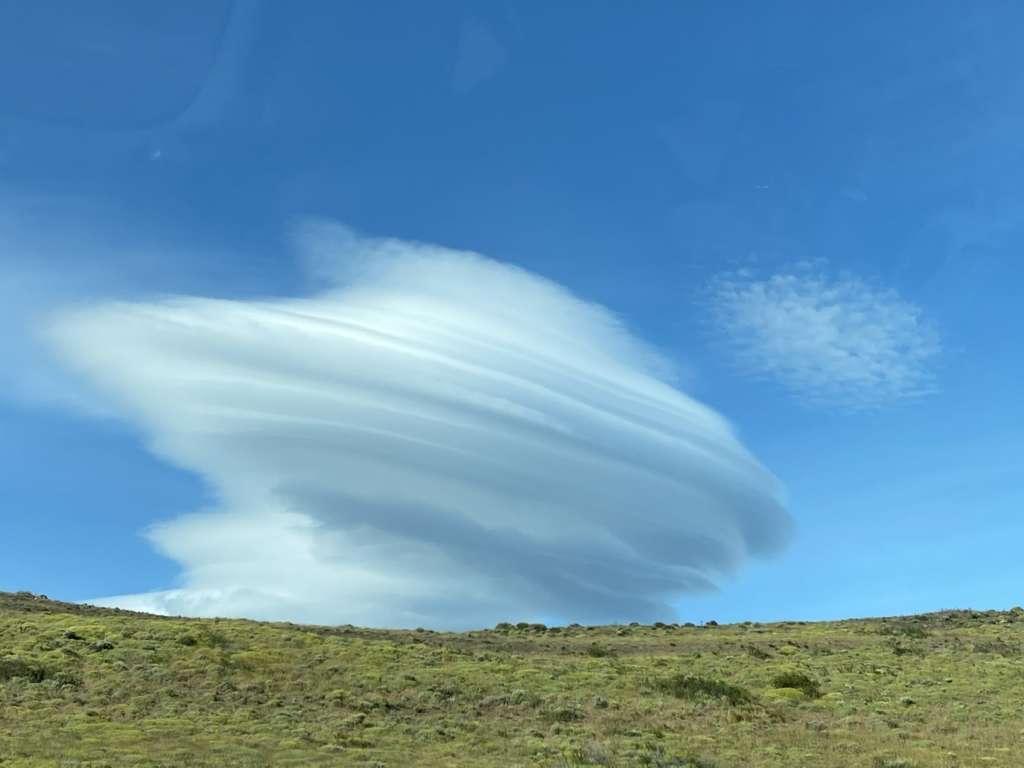 On retrouve l’équipe de choc d’hier pour nous accompagner : Apollo et Gustavo. La performance de Noah de la veille a fait le tour du staff, c’est la petite coqueluche des guides maintenant. Quand il traverse le hall, on entend du “Noaaah !” à tout bout de champs. Sur la route, on retrouve les nuages lenticulaires si caractéristiques de la Patagonie. On ne résiste pas un stop rapide pour admirer les Torre d’un mirador et bien nous en prend car un condor passe justement par là.